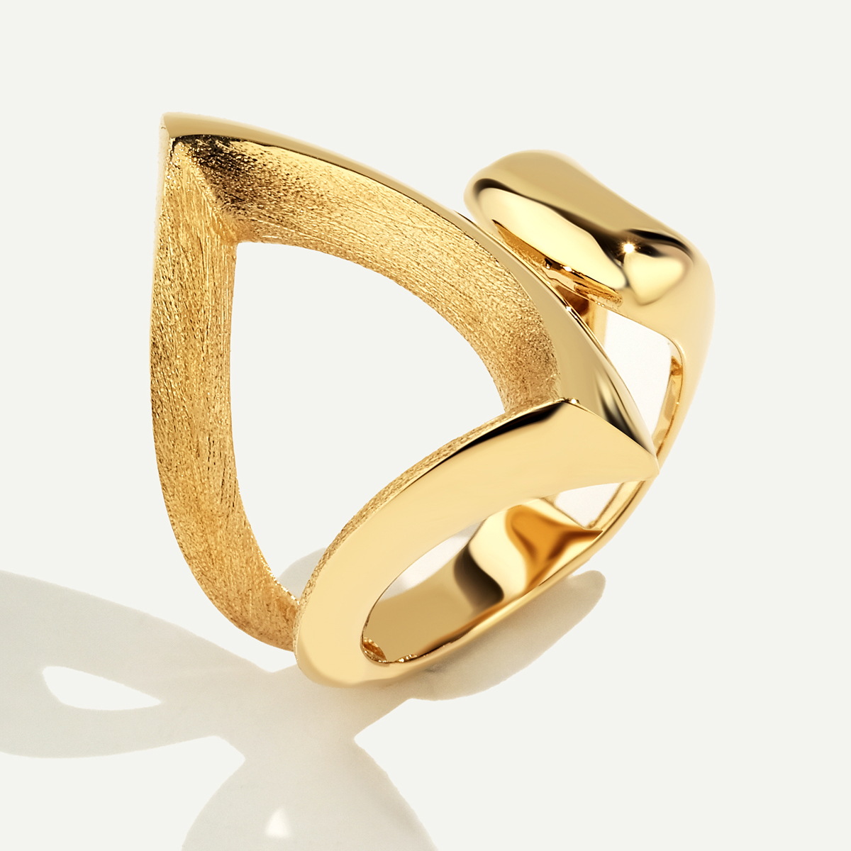 14 Ayar Altın Yüzük, organik hatlarıyla doğadan ilham alan bir tasarım sunuyor. Yüzüğün asimetrik formu, parmakta adeta sanatsal bir duruş sergiler. Sade ama özgün tasarımı sayesinde farklı stillerle kolayca uyum sağlar.