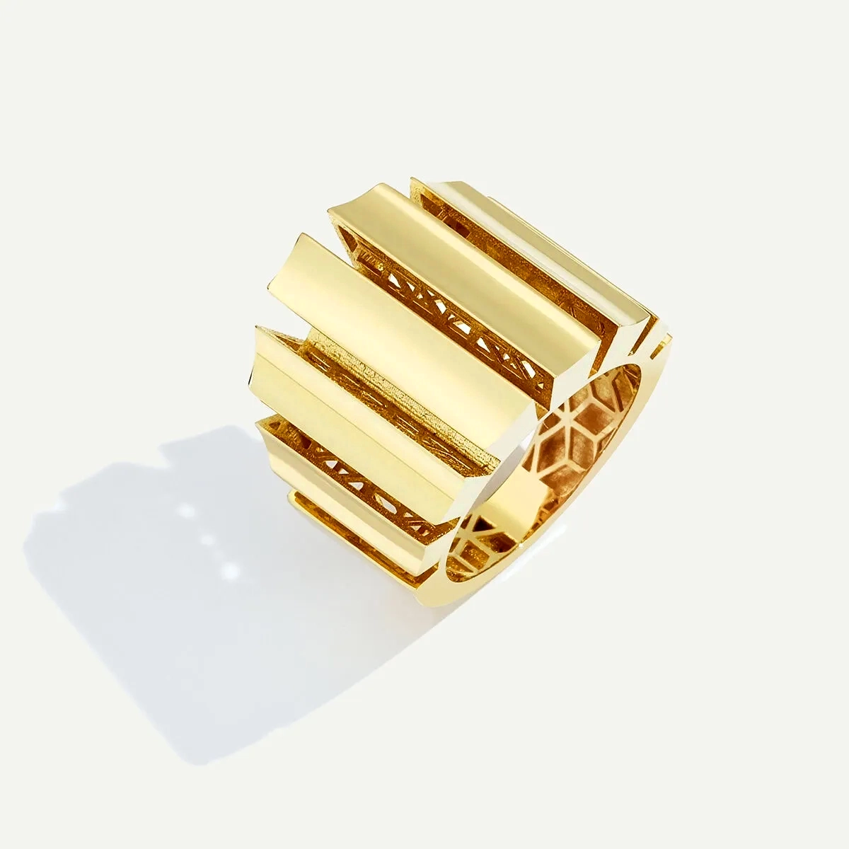 14 Ayar Altın Parlak ve Mat Dokulu Yüzük
