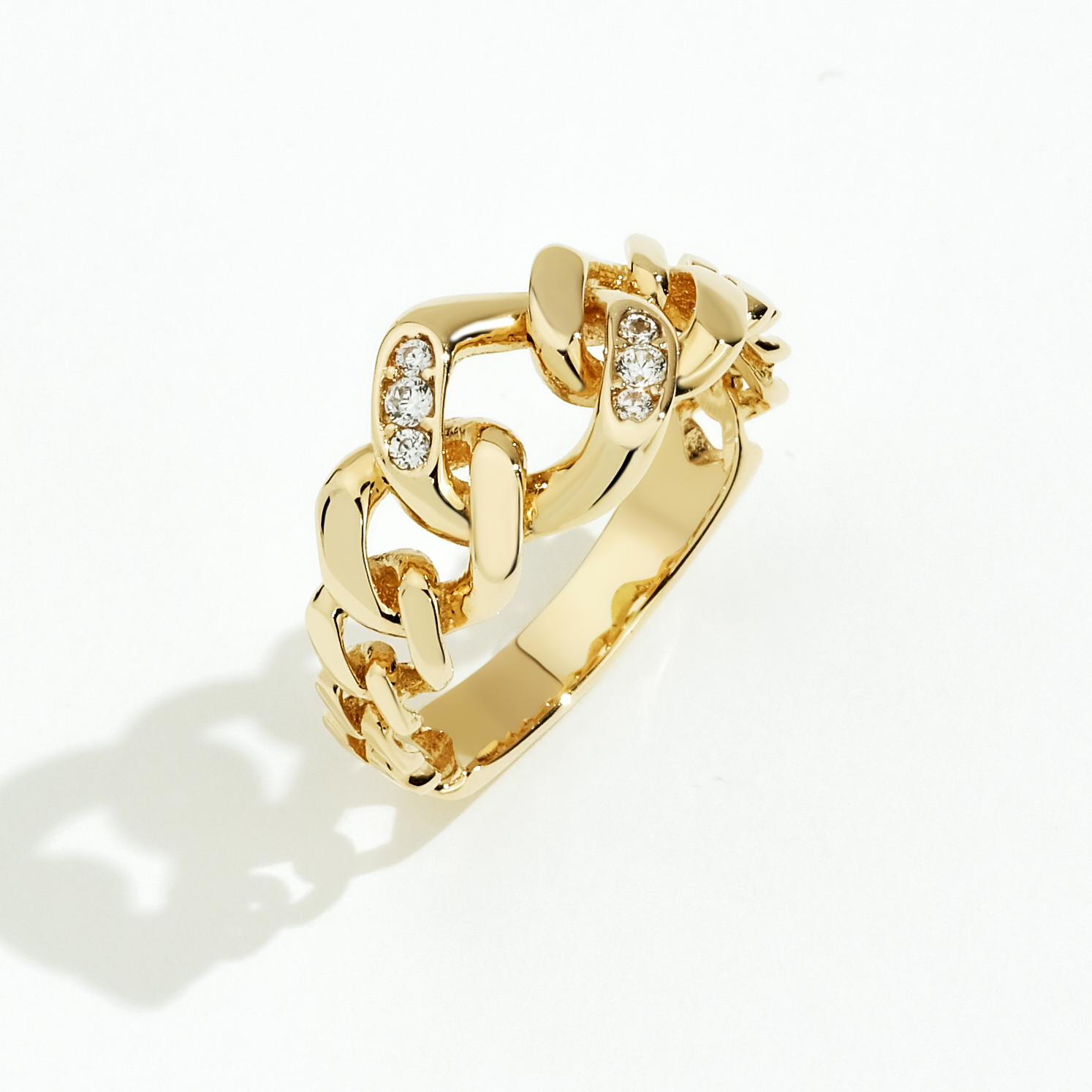 14 Ayar Altın Zincir Görünümlü Taşlı Yüzük