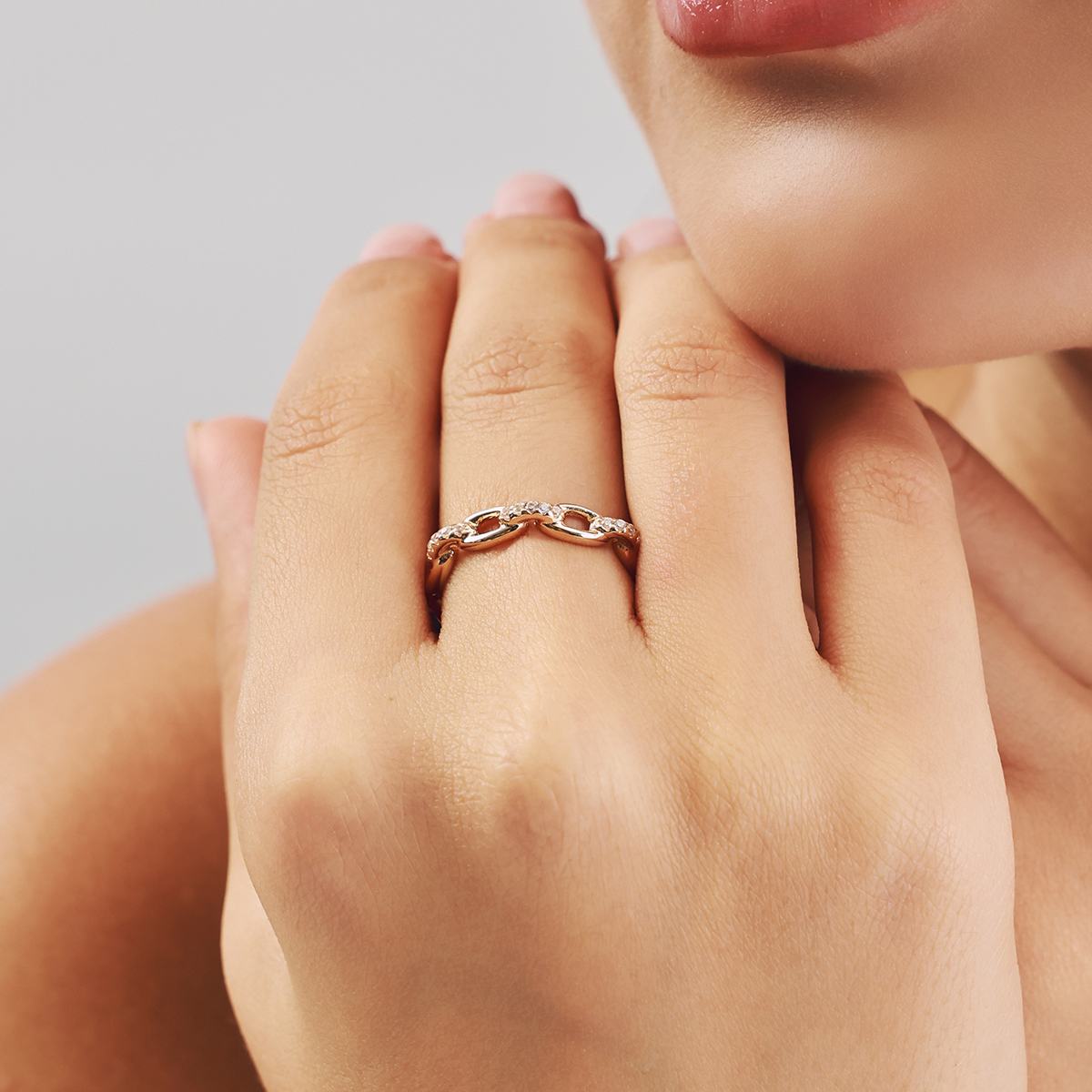 14 Ayar Altın Zincir Görünümlü Taşlı Yüzük