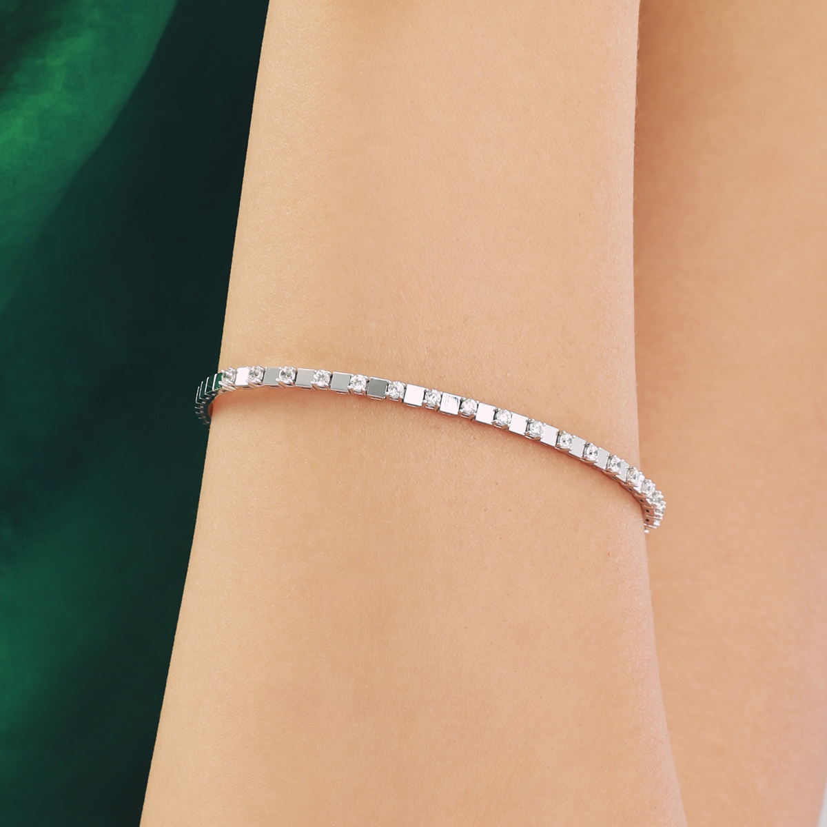 Zarif ve ince yapısıyla öne çıkan 14 Ayar Beyaz Altın Sıralı Küp Taşlı Kelepçe, sıralı küp beyaz altın şekilleri ve ışıltılı taşlarıyla birlikte göz alıcıdır. Günlük kullanım için sade ama şık bir tercih olabileceği gibi, özel günlerde de zarafetiyle dikkat çeker. Regold logolu özel kutusunda ve garanti belgesiyle birlikte sunulmaktadır.