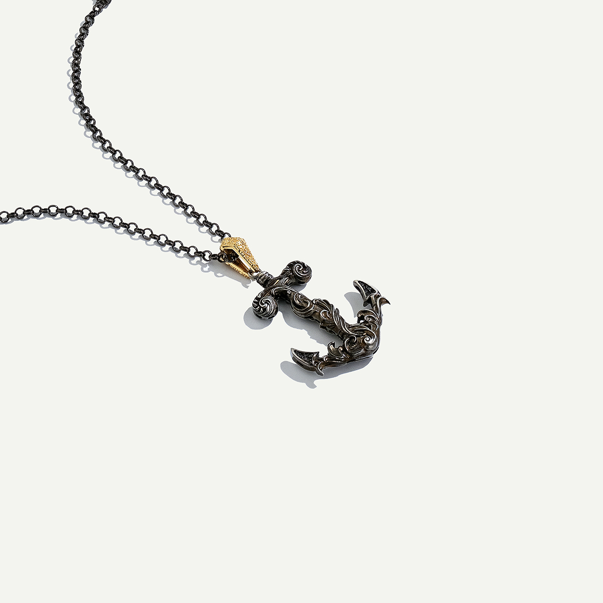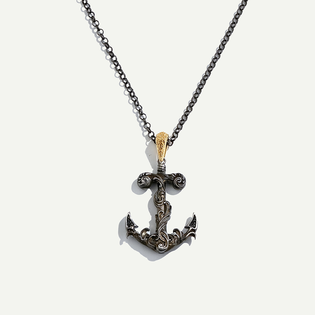 925 ayar gümüşten üretilmiş ve 12,53 gram ağırlığında bu çapa figürlü kolye, 1,26 gram 18 ayar altın detaylarla birleşerek hem sağlam hem zarif bir yapı sunuyor. Çapanın merkezi kısmı altınla vurgulanırken, üzerinde yer alan 0,06 karat pırlantalar hoş ve ince bir parıltı sağlıyor. Deniz ve macera sembolü olan çapa figürü, bu kolyeye derin anlam katarken tasarımın dengeli formu her tarza uyum sağlayan güçlü bir aksesuar sunuyor. Hem takı severler hem de özgün ve maskülen bir stile sahip olmak isteyenler için modern, karakteristik ve değerli bir aksesuar alternatifi. Unisex yapısıyla farklı tarzlara zahmetsizce eşlik eder. Regold logolu özel kutusunda ve garanti belgesiyle sunulmaktadır.