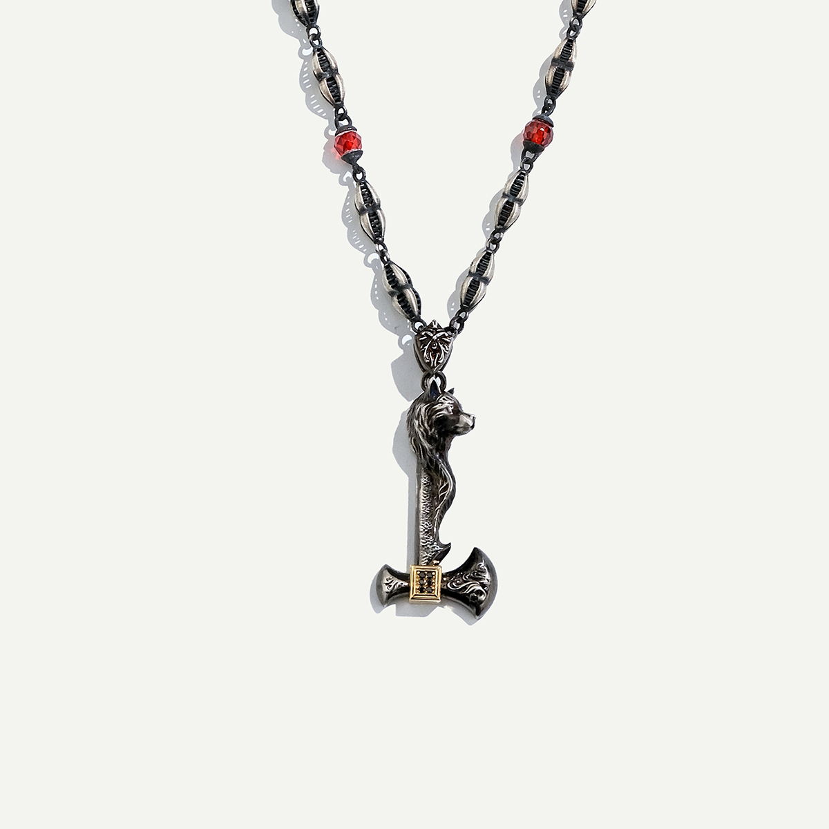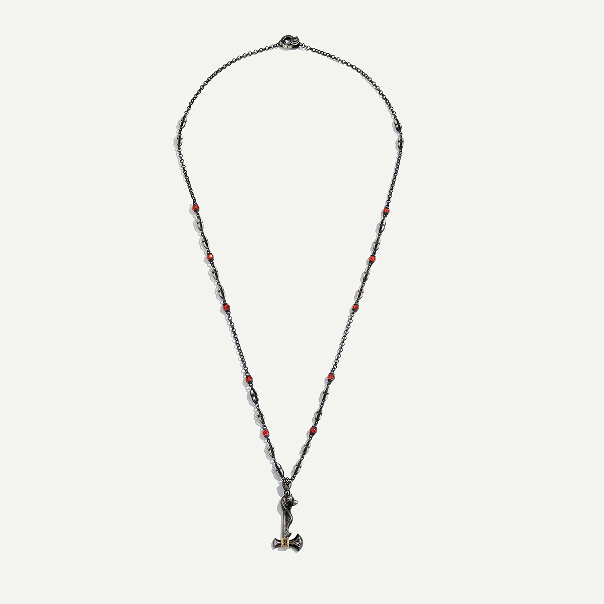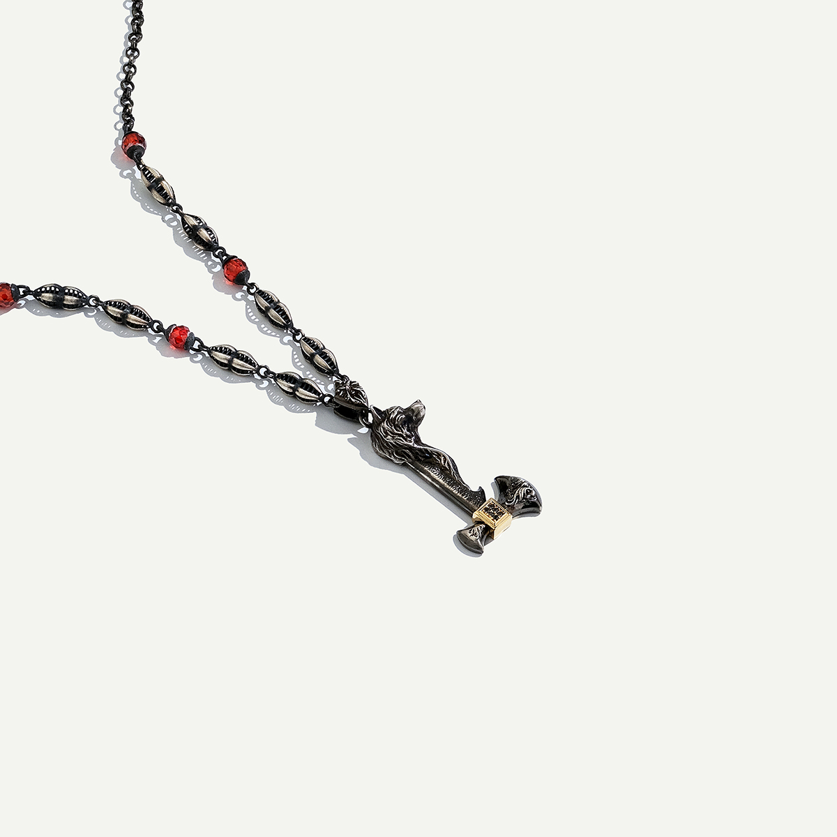 925k Gümüş ve 18 Ayar Altın Balta Figürlü Pırlantalı Kolye