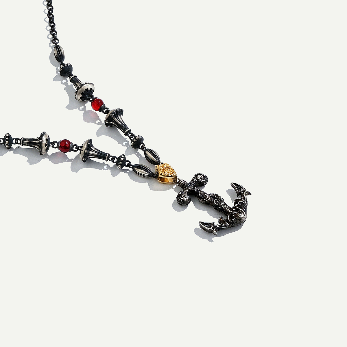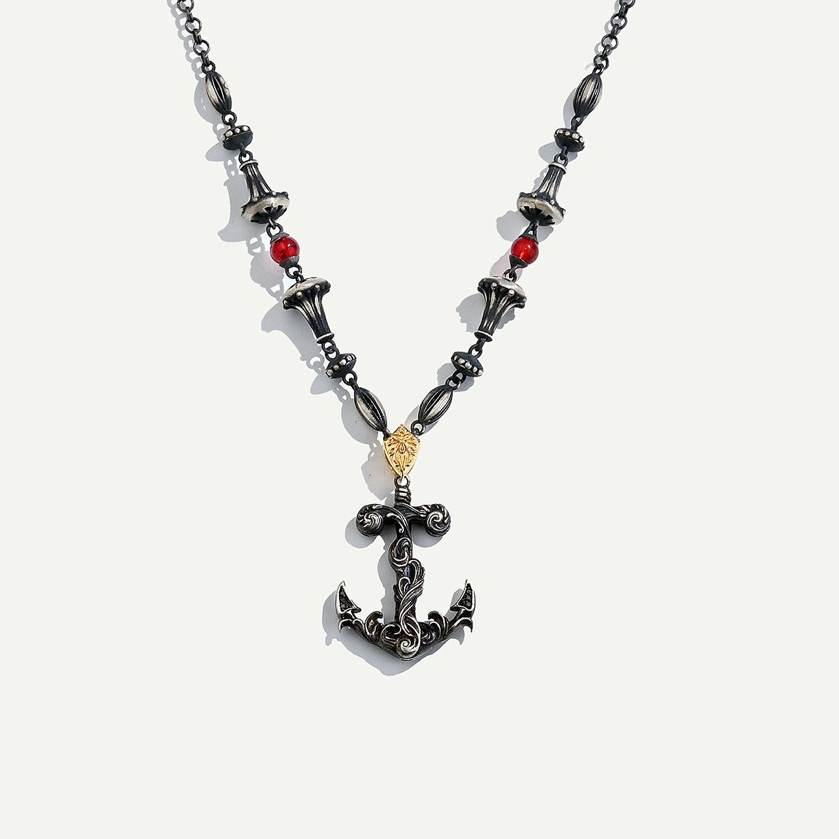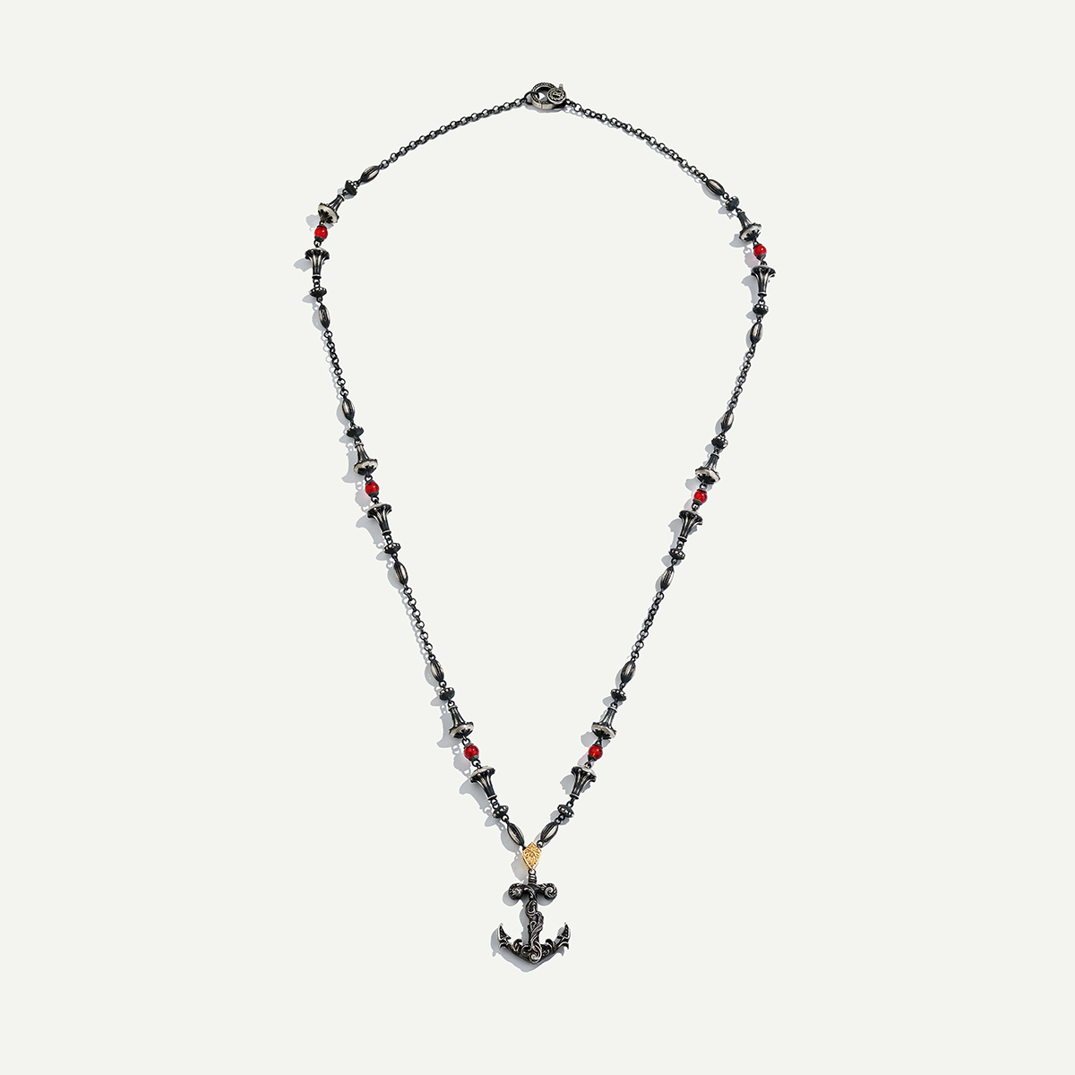 925k Gümüş ve 18 Ayar Altın Çapa Figürlü Pırlantalı Kolye