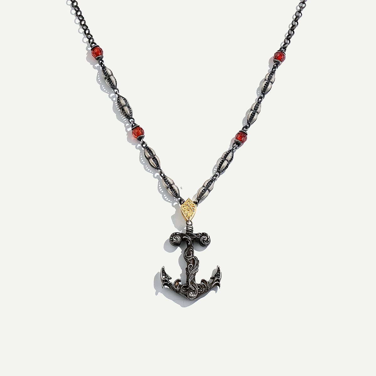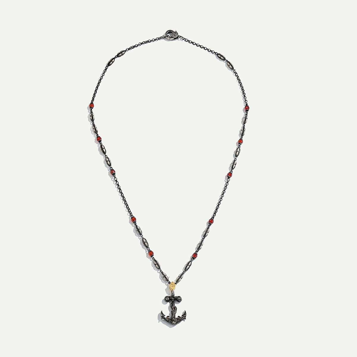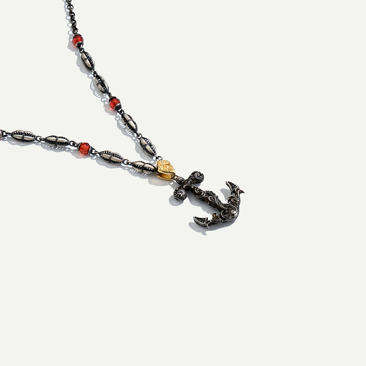 925k Gümüş ve 18 Ayar Altın Çapa Figürlü Pırlantalı Kolye