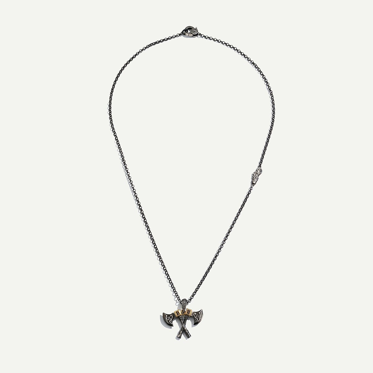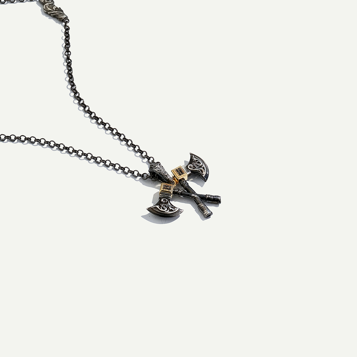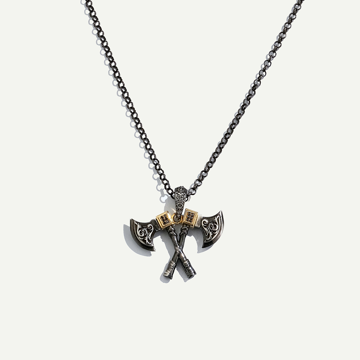 925k Gümüş ve 18 Ayar Altın Çift Balta Figürlü Pırlantalı Kolye