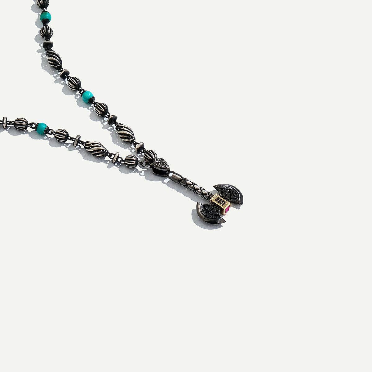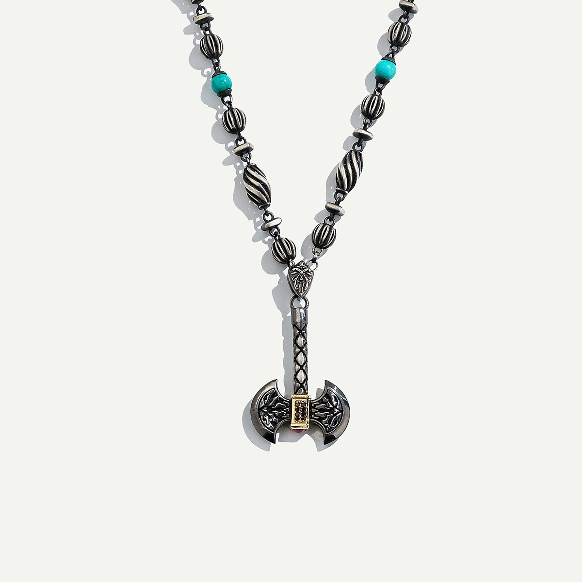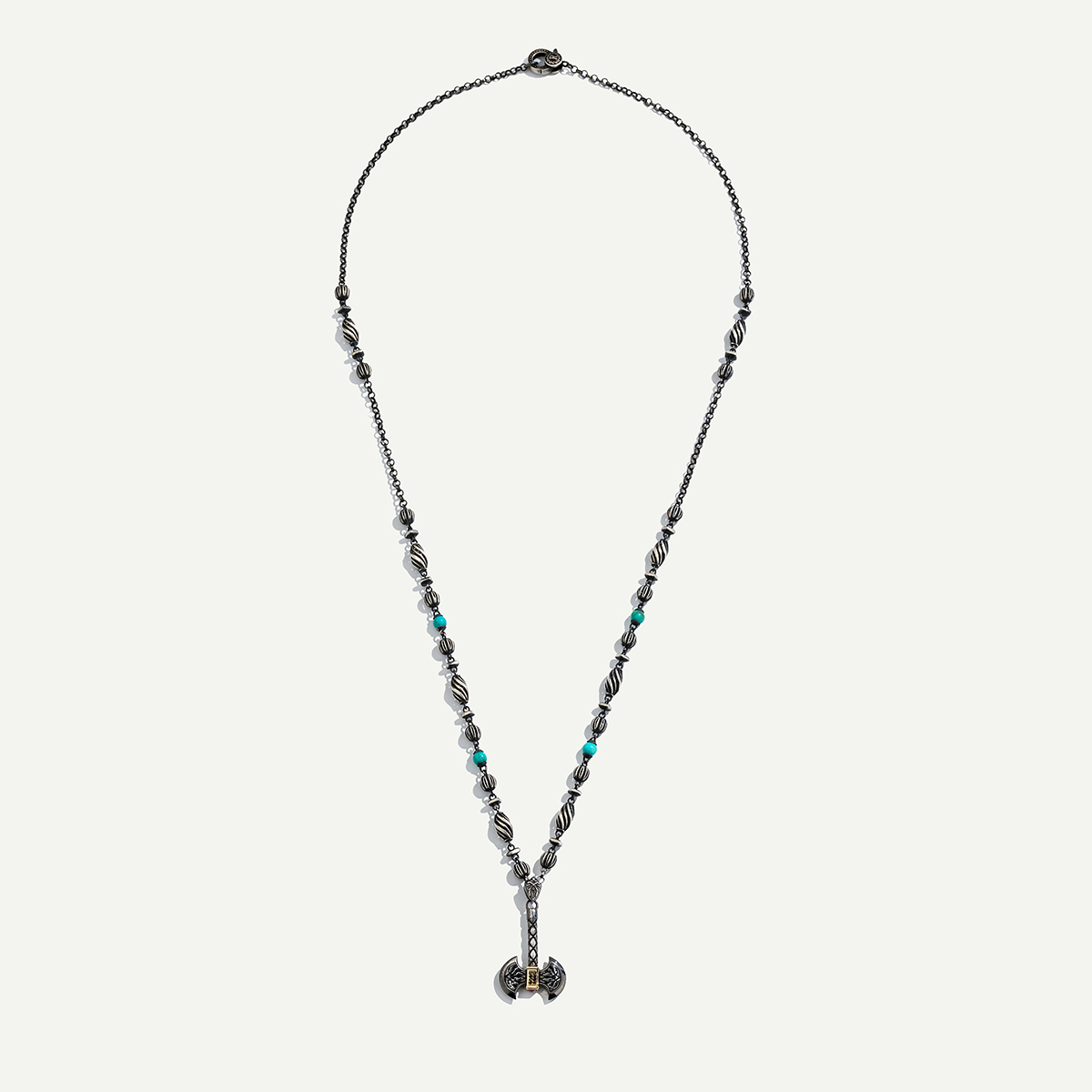 925k Gümüş ve 18 Ayar Altın Çift Taraflı Balta Figürlü Pırlantalı Kolye