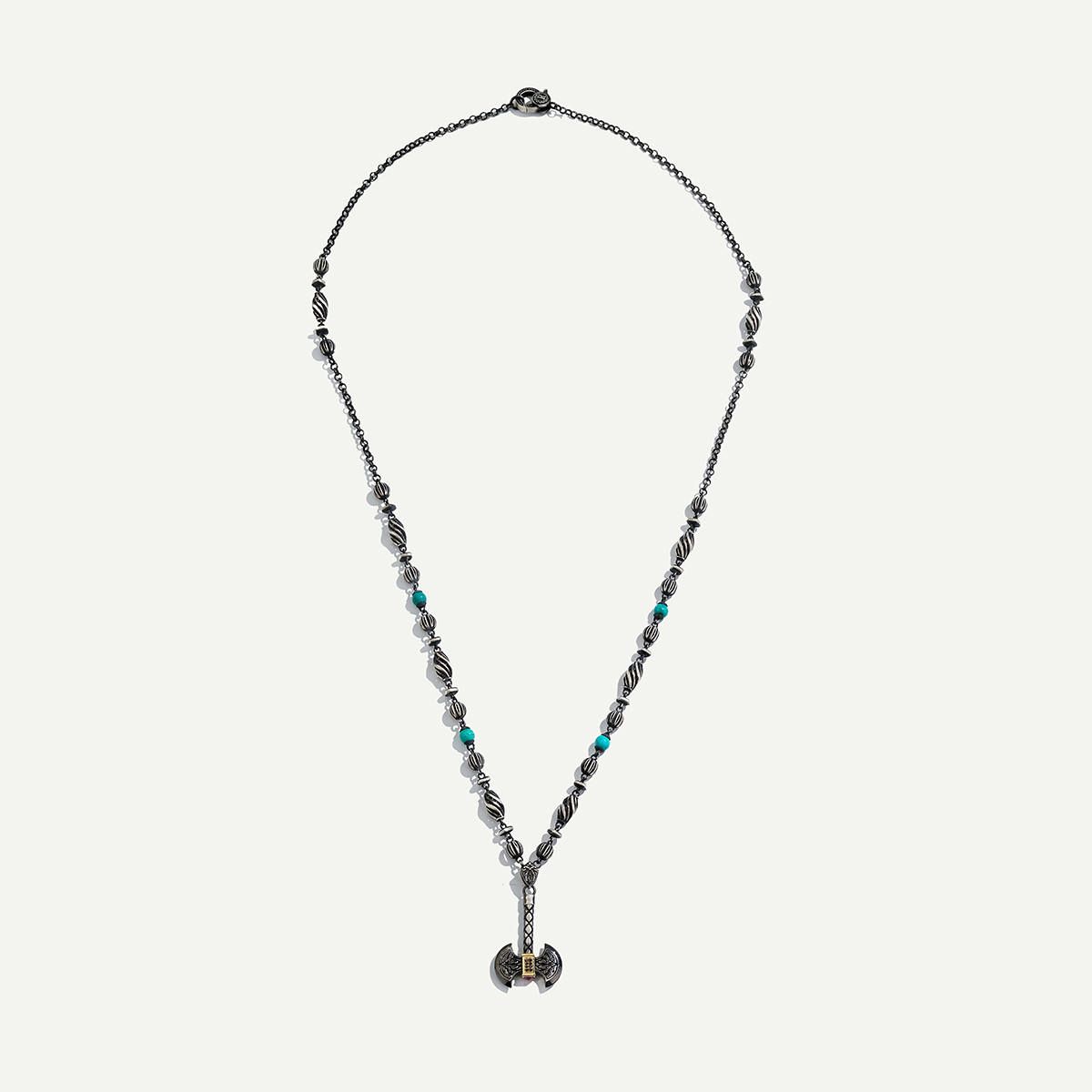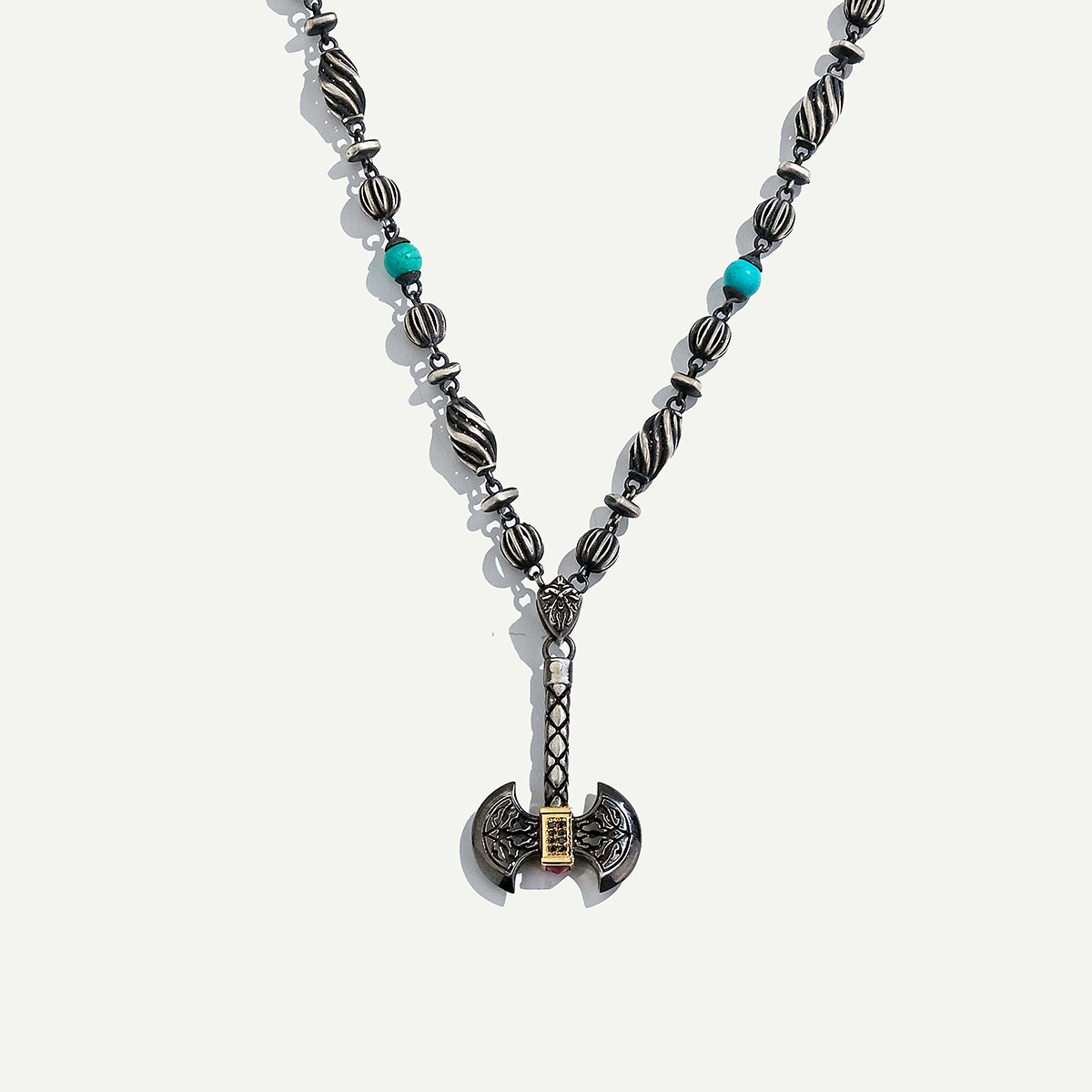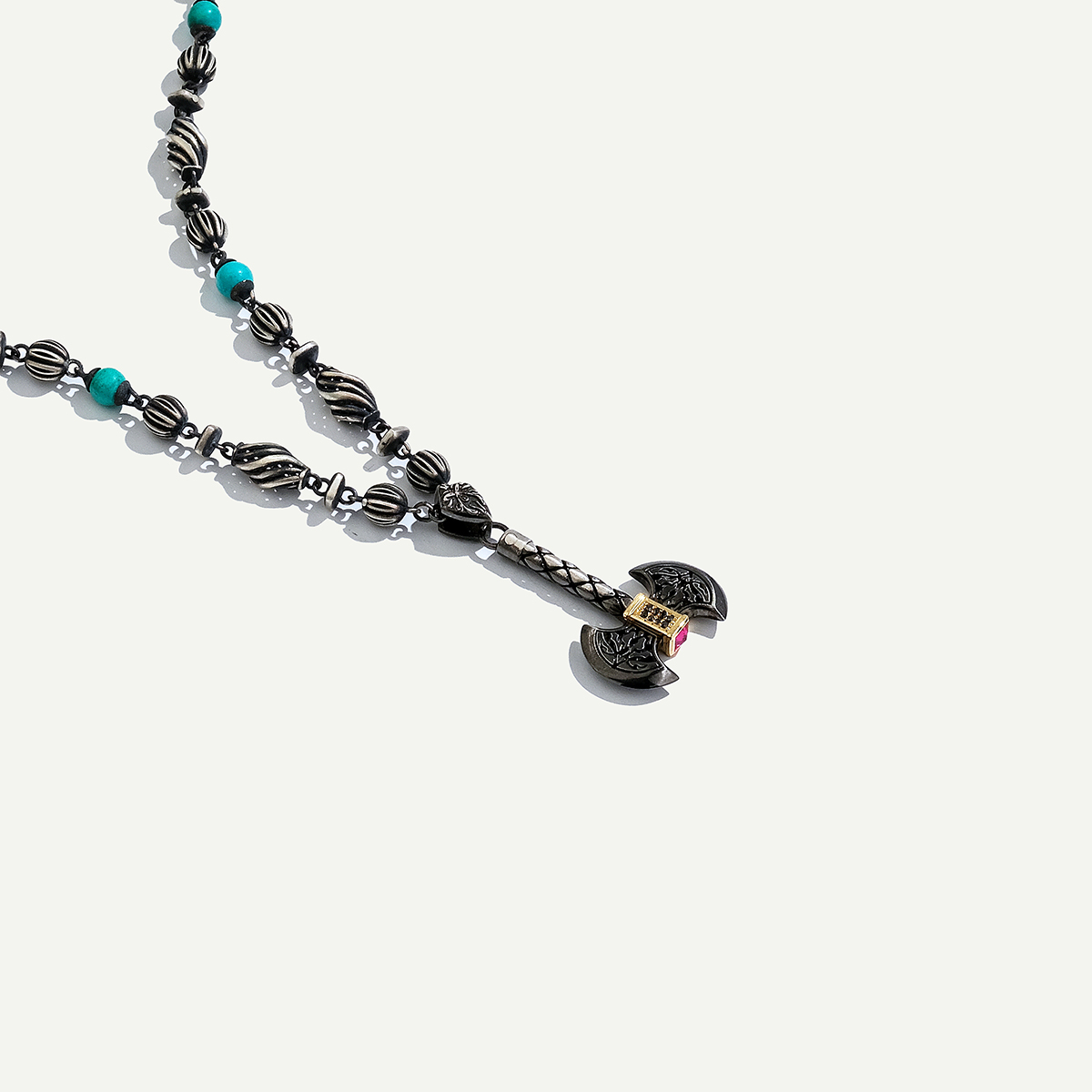 925k Gümüş ve 18 Ayar Altın Çift Taraflı Balta Figürlü Pırlantalı Kolye