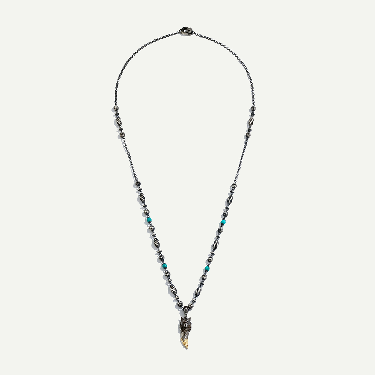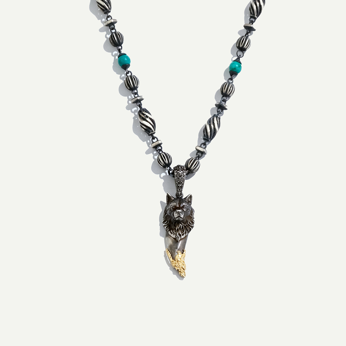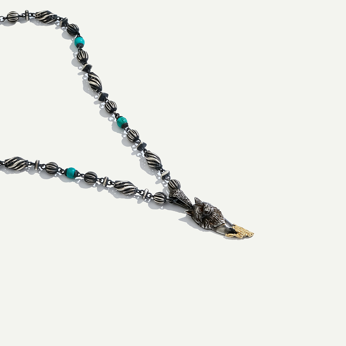 925k Gümüş ve 18 Ayar Altın Kurt Figürlü Kolye