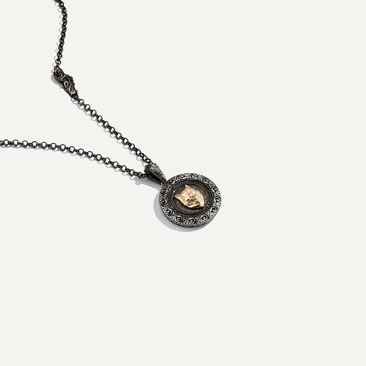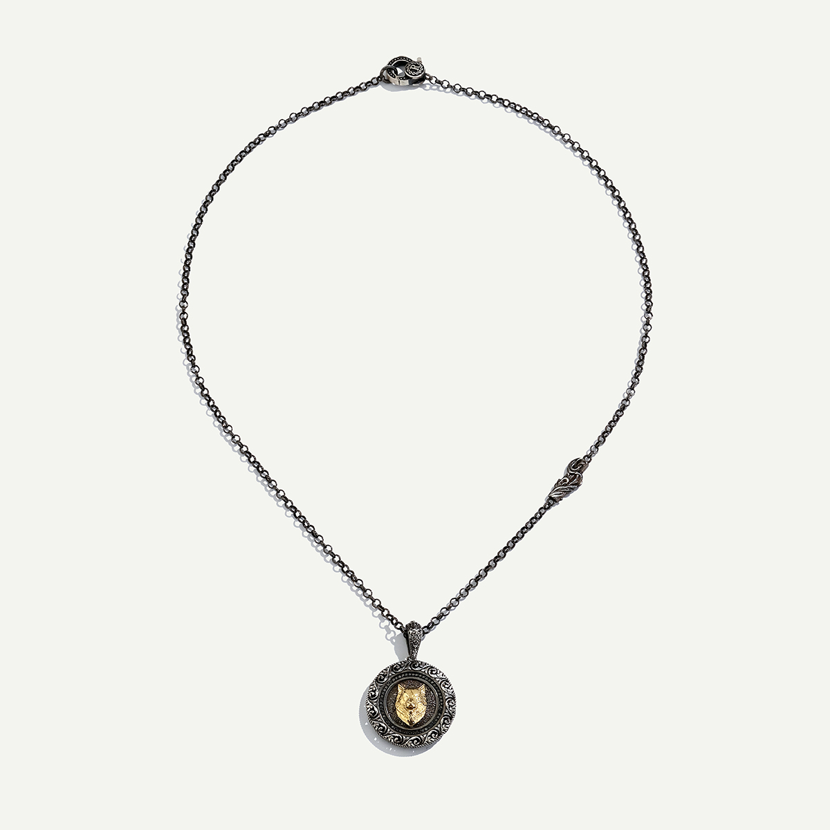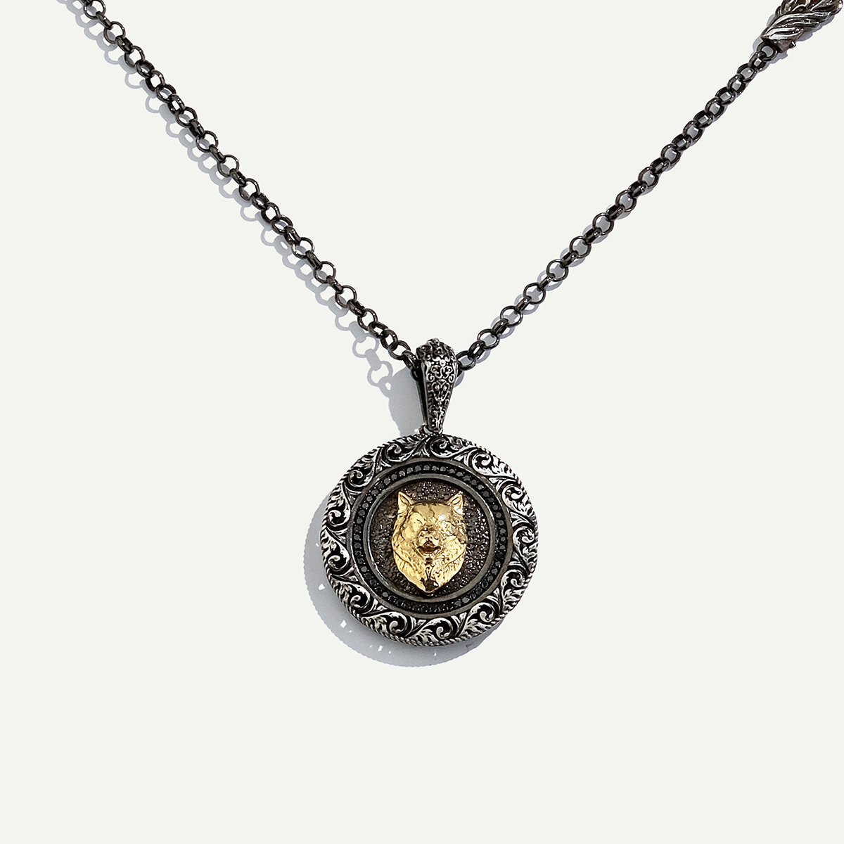 925k Gümüş ve 18 Ayar Altın Kurt Figürlü Pırlantalı Kolye