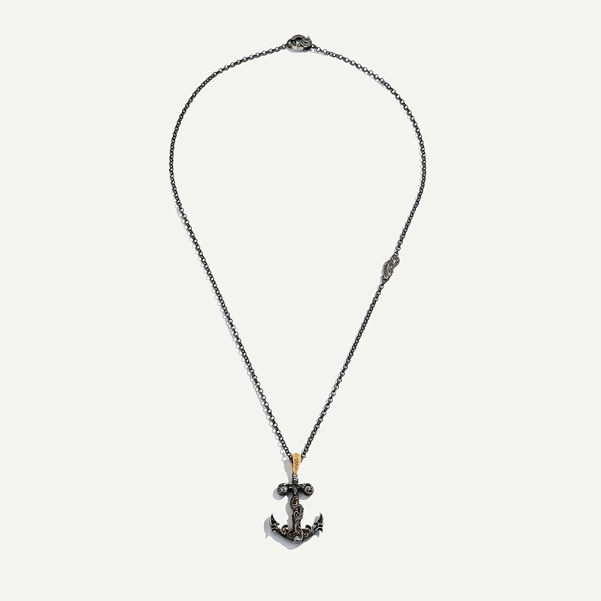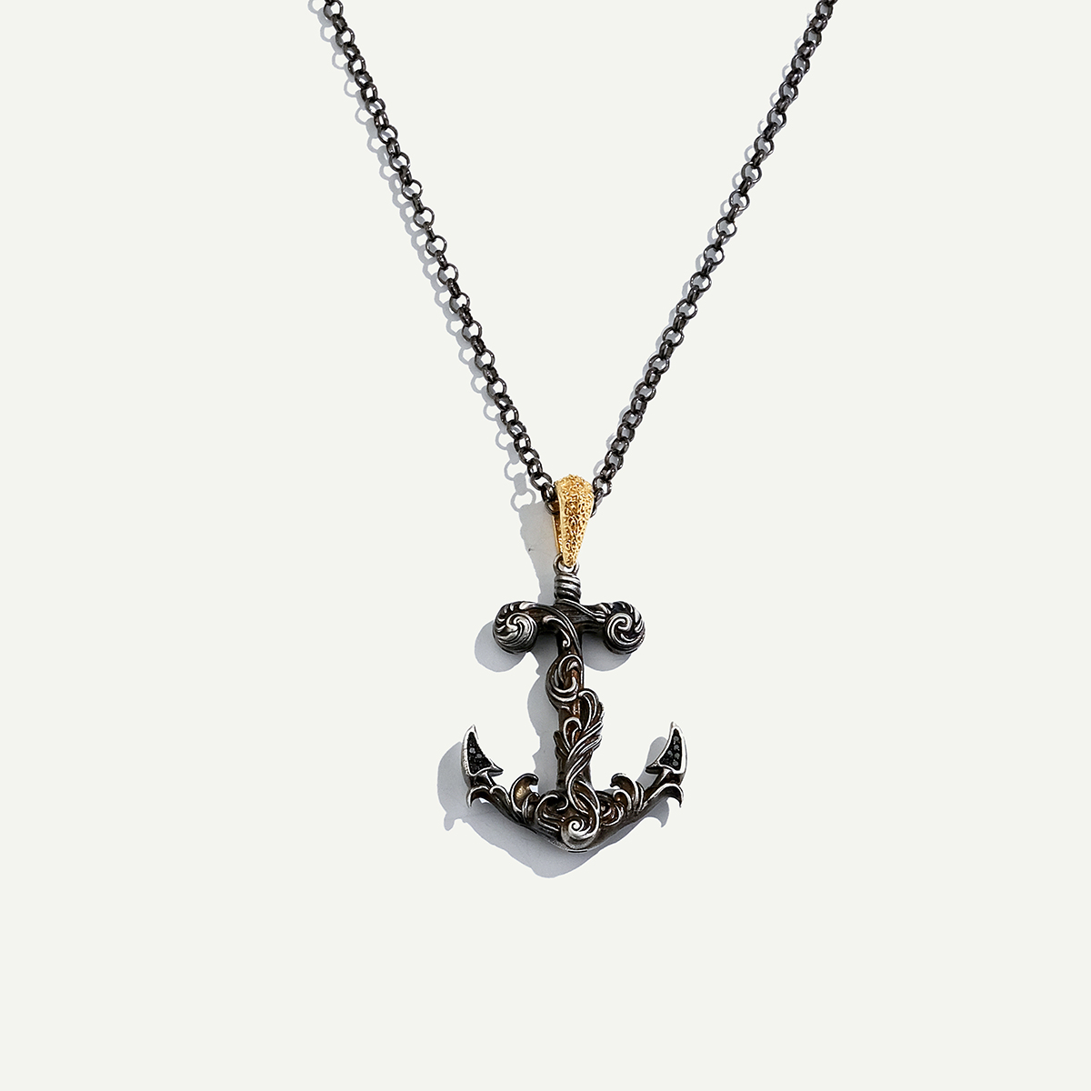 925 ayar gümüşten üretilmiş ve 12,67 gram ağırlığında bu çapa figürlü kolye, 1,26 gram 18 ayar altın detaylarla birleşerek hem sağlam hem zarif bir yapı sunuyor. Çapanın merkezi kısmı altınla vurgulanırken, üzerinde yer alan 0,06 karat pırlantalar hoş ve ince bir parıltı sağlıyor. Deniz ve macera sembolü olan çapa figürü, bu kolyeye derin anlam katarken tasarımın dengeli formu her tarza uyum sağlayan güçlü bir aksesuar sunuyor. Hem takı severler hem de özgün ve maskülen bir stile sahip olmak isteyenler için modern, karakteristik ve değerli bir aksesuar alternatifi. Unisex yapısıyla farklı tarzlara zahmetsizce eşlik eder. Regold logolu özel kutusunda ve garanti belgesiyle sunulmaktadır.