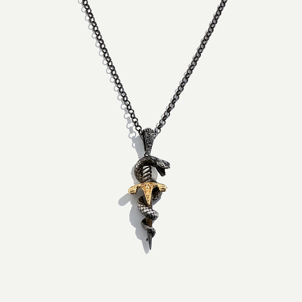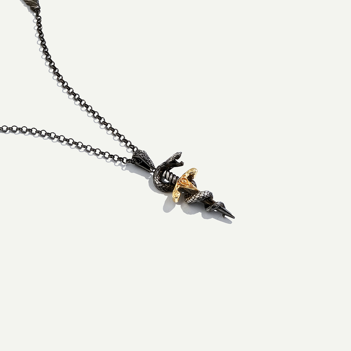 925k Gümüş ve 18 Ayar Altın Yılan Figürlü Kolye