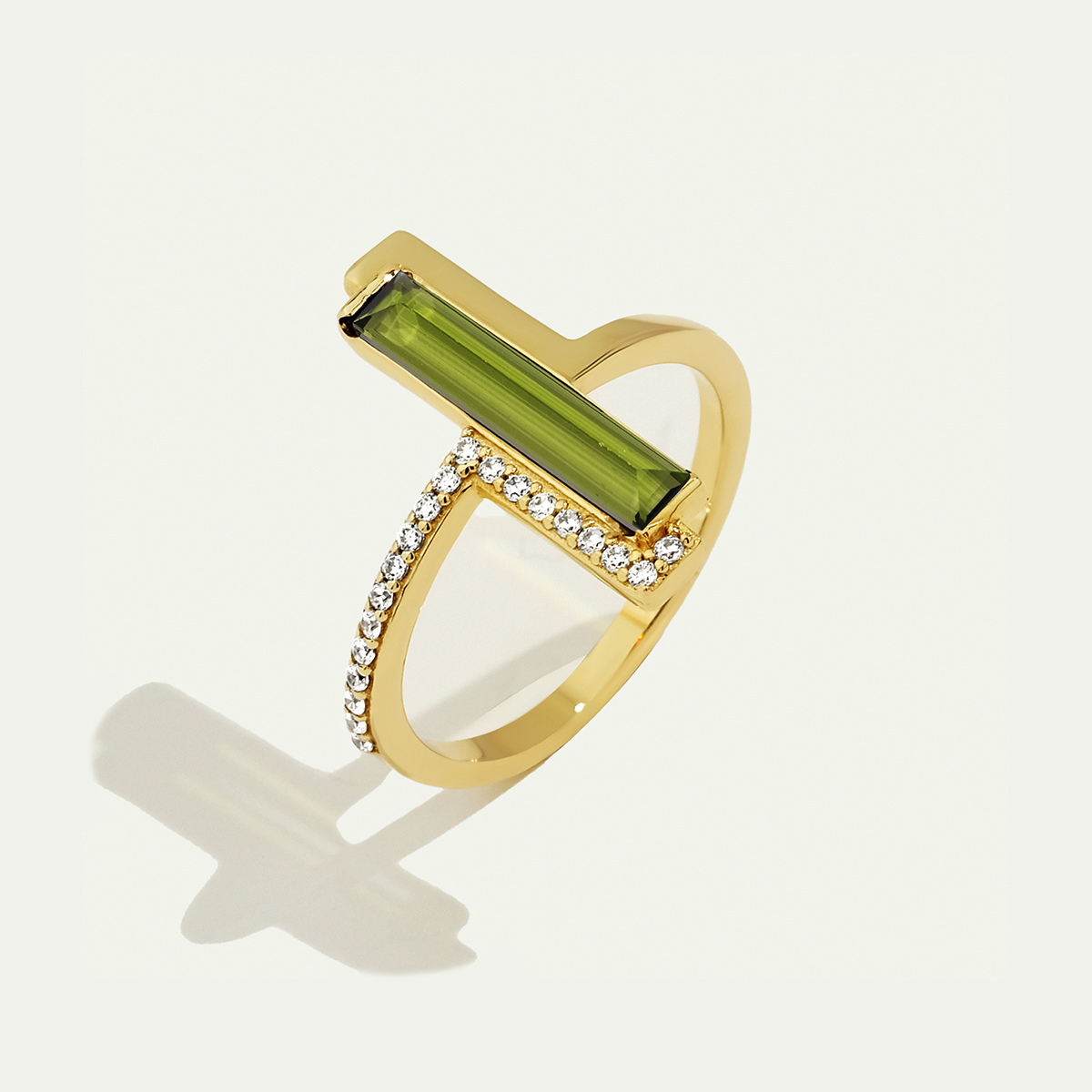 Baget 14 Ayar Altın Açık Yeşil Taşlı Yüzük