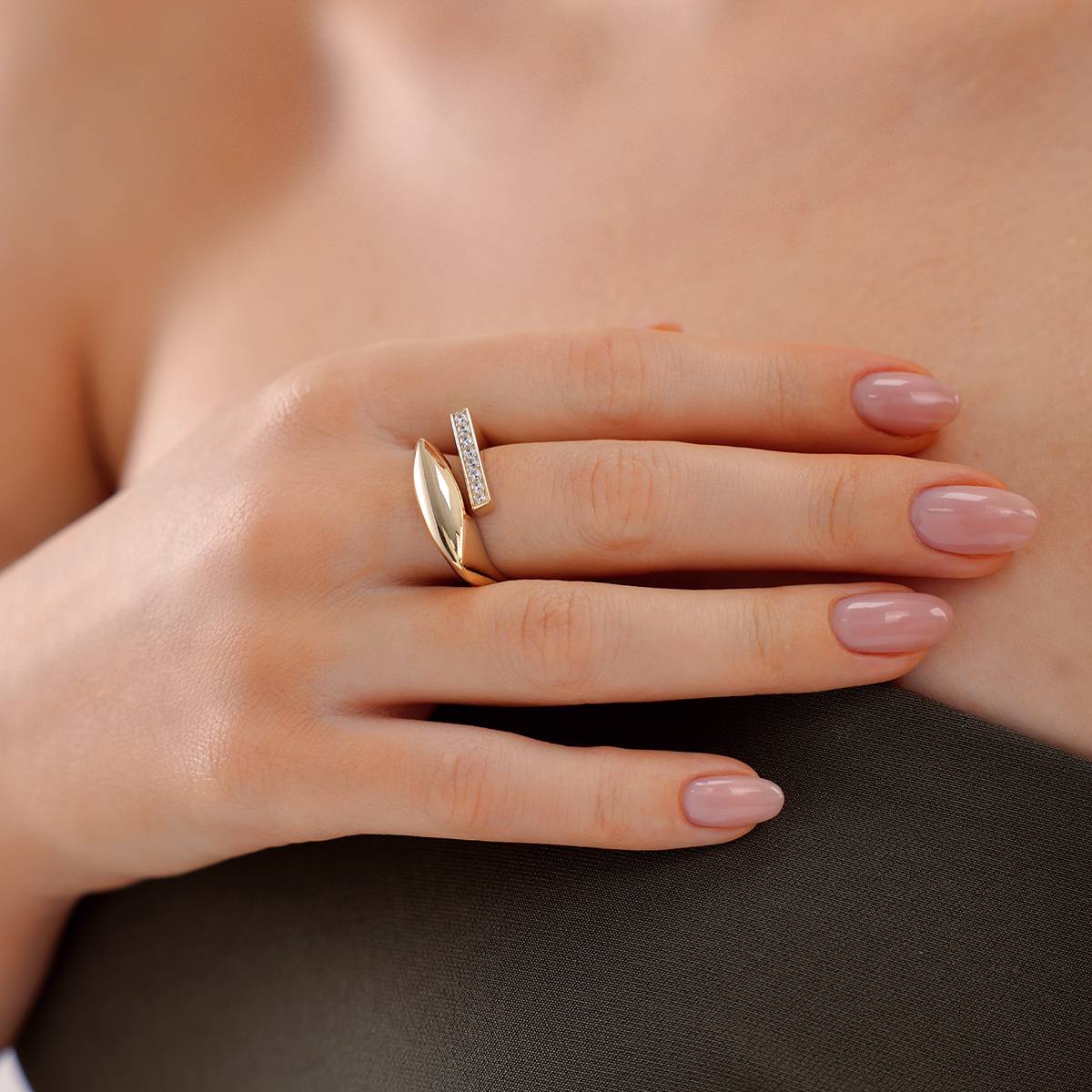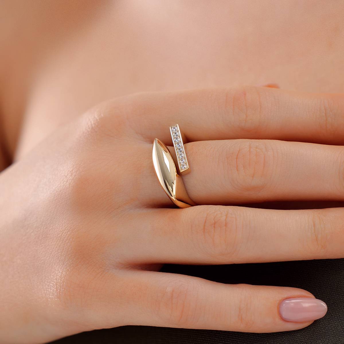 Baget 14 Ayar Altın İkili Taşlı Yüzük