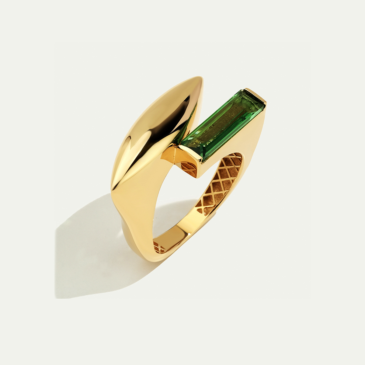Baget 14 Ayar Altın İkili Yeşil Taşlı Yüzük