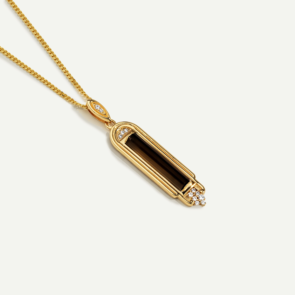 Zarif hatlara sahip Baget 14 Ayar Altın Kahverengi Taşlı Kolye, kahverenginin derin ve asil tonunu taş detaylarıyla buluşturuyor. Uzun dikdörtgen formdaki taş, modern çizgileriyle güçlü bir duruş sergilerken, çevresindeki ışıltılı detaylar tasarıma sofistike bir şıklık katıyor. Günlük kombinlerden özel davetlere kadar stilinize zarafetle eşlik eder. Regold logolu özel kutusunda ve garanti belgesiyle birlikte sunulmaktadır.