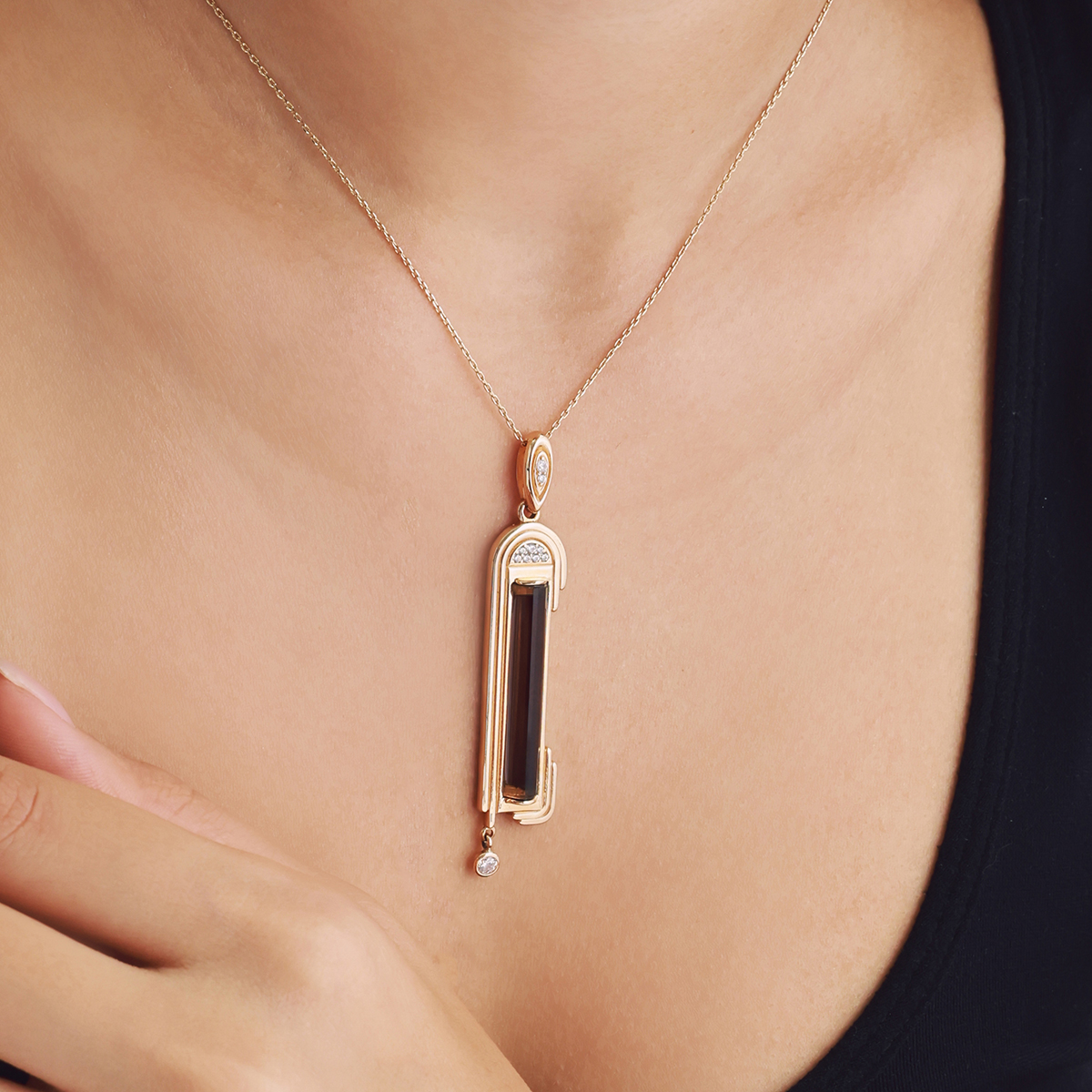 Baget 14 Ayar Altın Kahverengi Taşlı Kolye