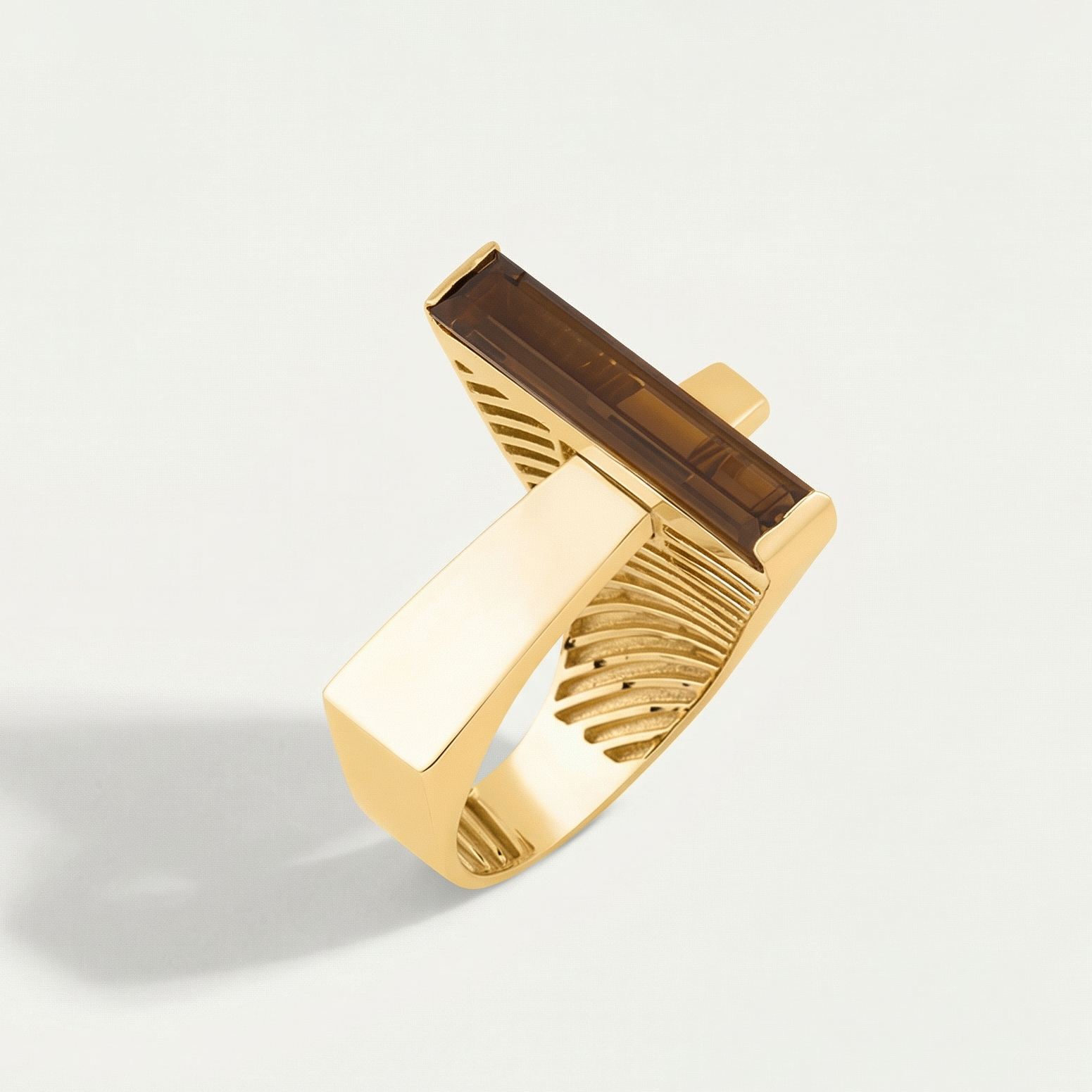 Baget 14 Ayar Altın Kahverengi Taşlı Yüzük