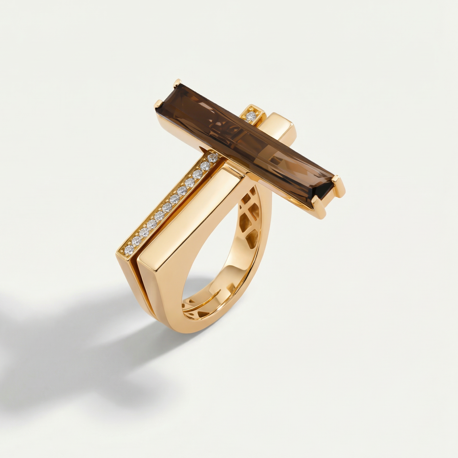 Baget 14 Ayar Altın Kahverengi Taşlı Yüzük