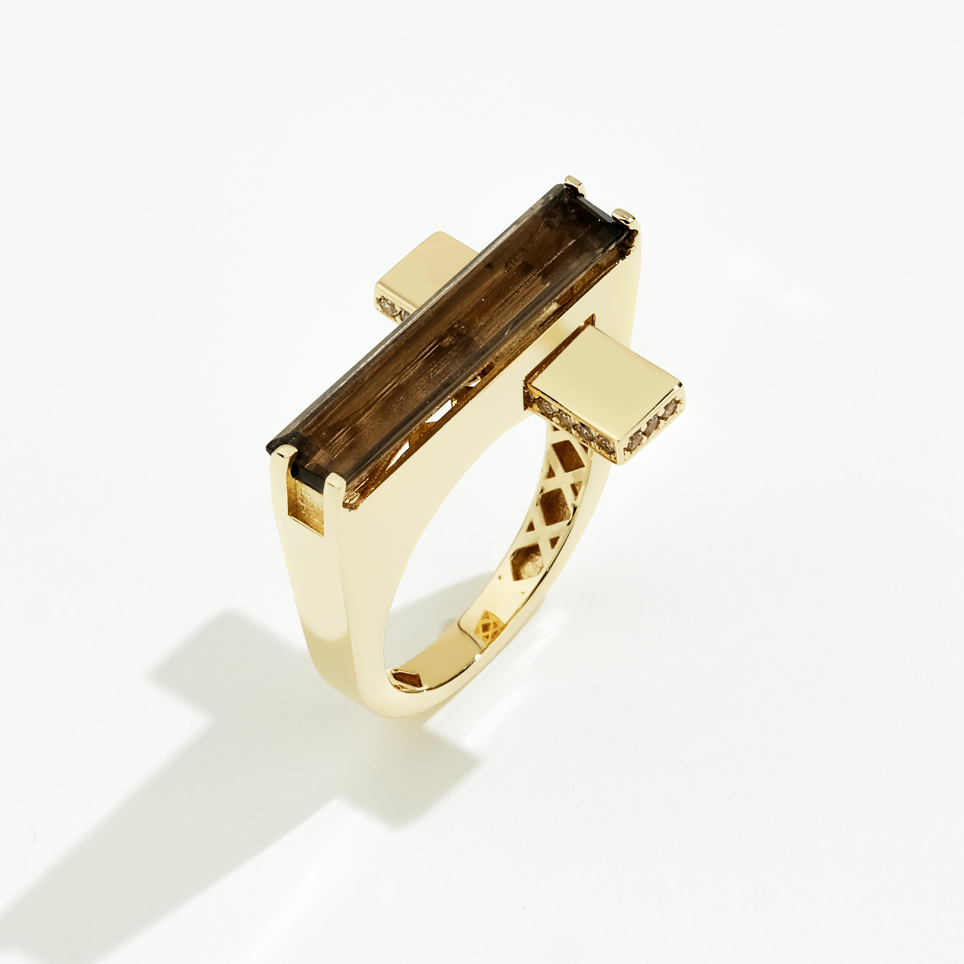 Baget 14 Ayar Altın Kahverengi Taşlı Yüzük