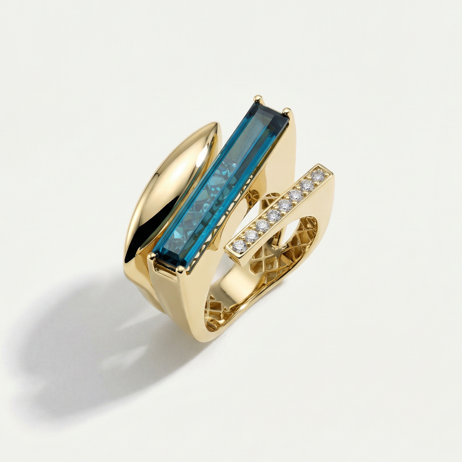 Baget 14 Ayar Altın Mavi Taşlı Yüzük