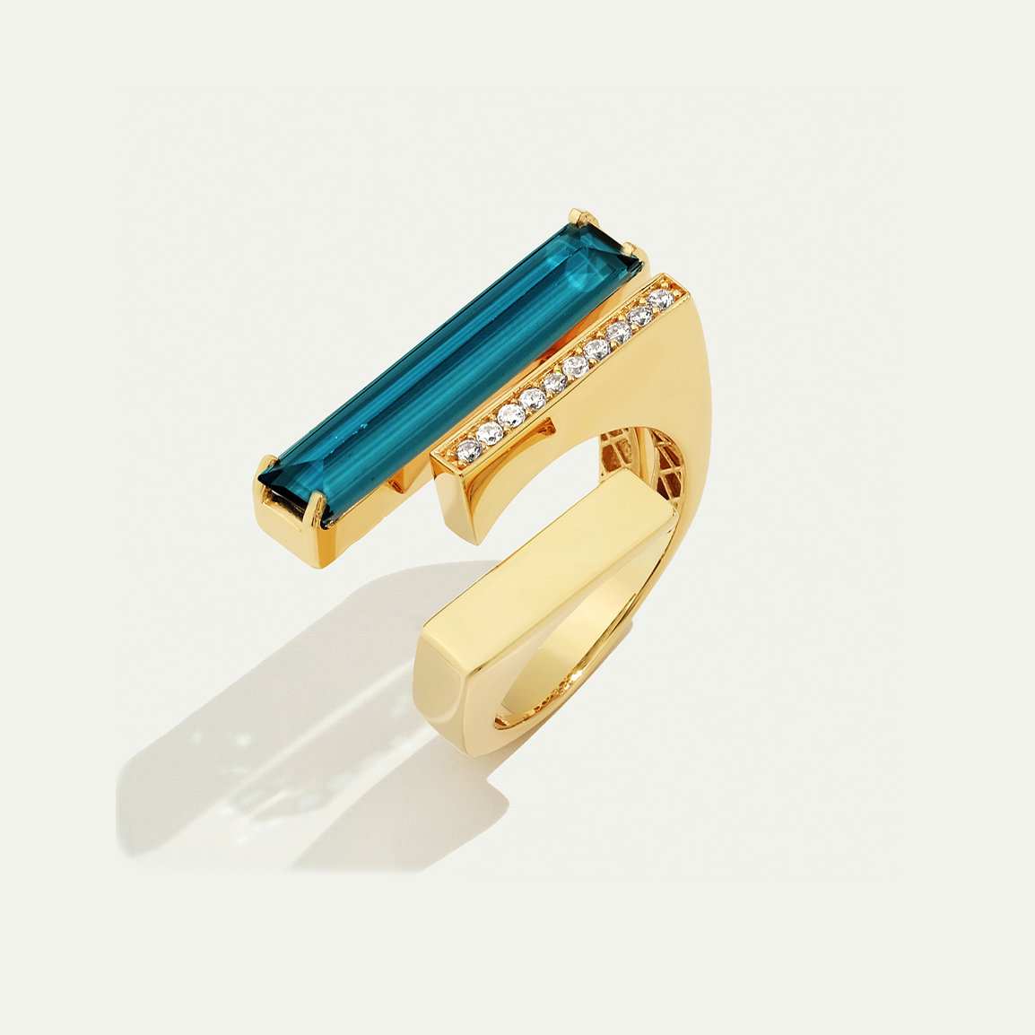 Keskin ve modern geometrik formuyla öne çıkan Baget 14 Ayar Altın Mavi Taşlı Yüzük, baget taşıyla birleşerek göz alıcı bir tasarım sunuyor. Dikkat çekici hatları ve canlı ışıltısı, tarzınıza sofistike ve çağdaş bir dokunuş katıyor. Regold özel kutusunda ve garanti belgesiyle sunulmaktadır.