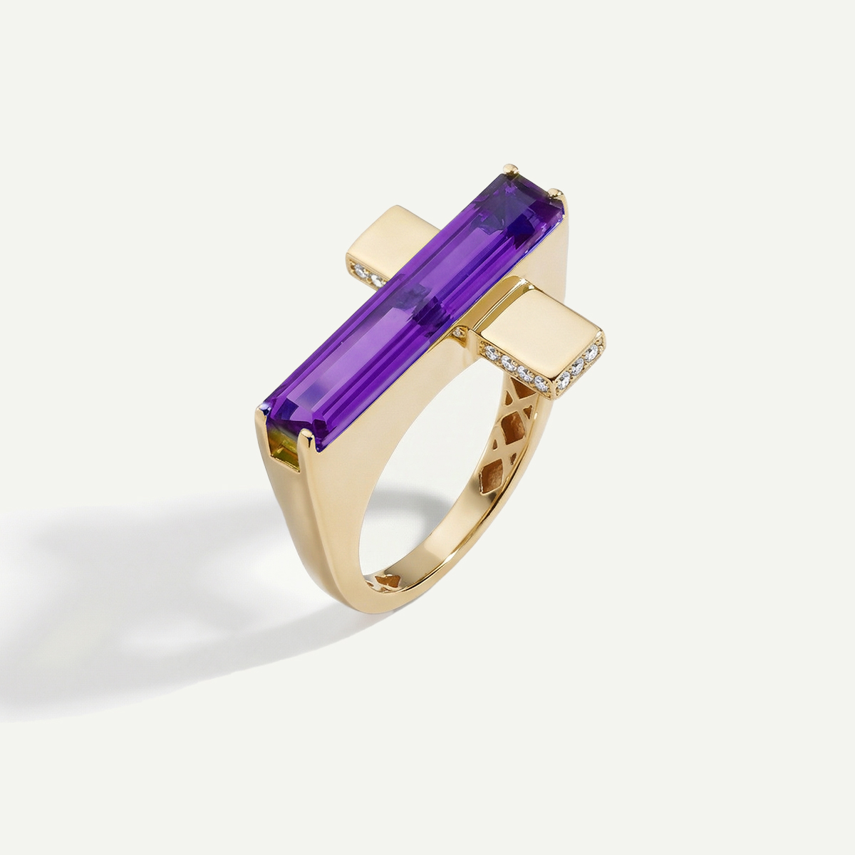 Baget 14 Ayar Altın Mor Taşlı Yüzük
