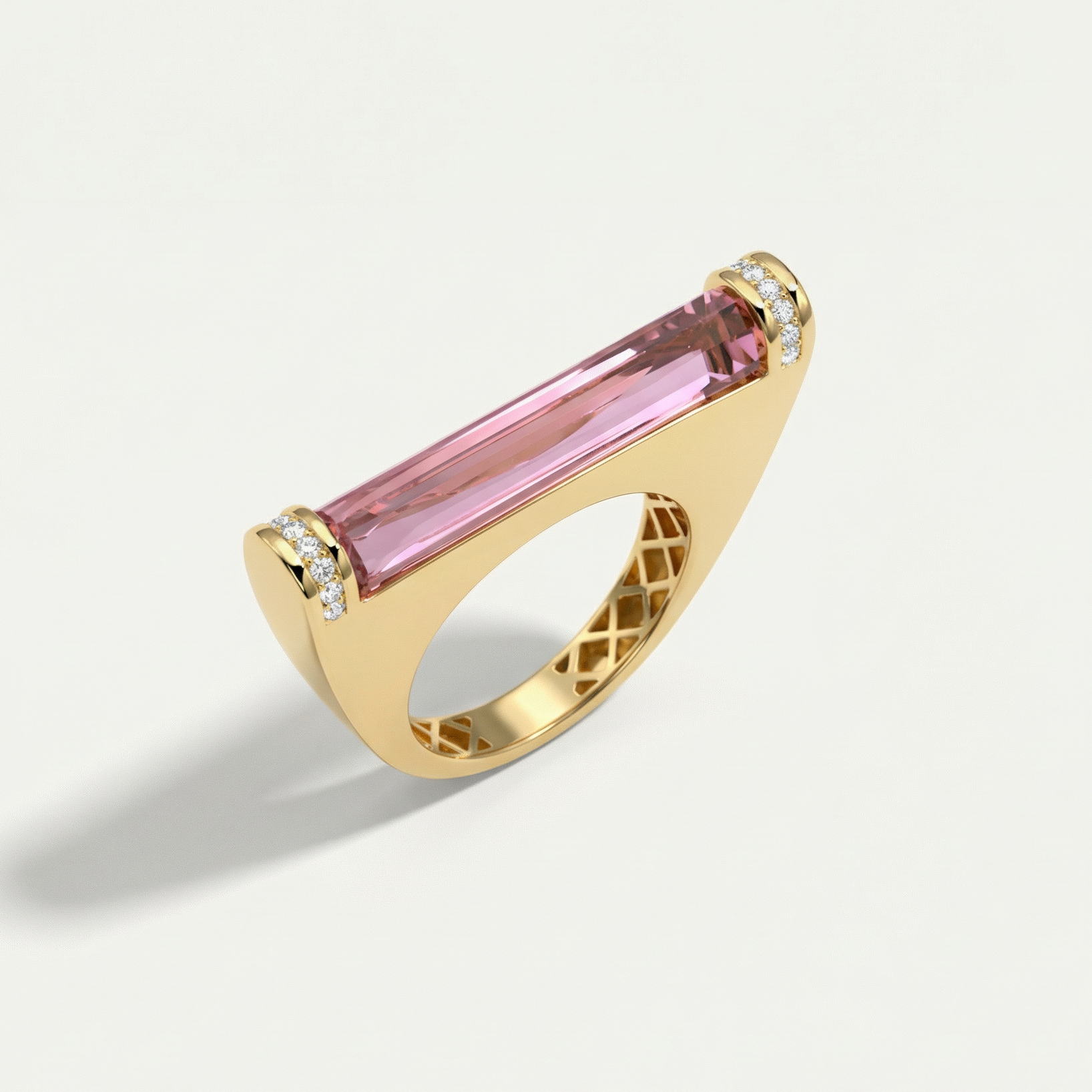 Özel kesim nervürlü taş ile fark yaratan bu tasarım iki uçta bulunan zarif küçük taşlarla süslenmiştir.Tek başına veya alyansınızın yanına takabilirsiniz.Regold logolu özel kutusunda ve garanti belgesi ile sunulmaktadır.