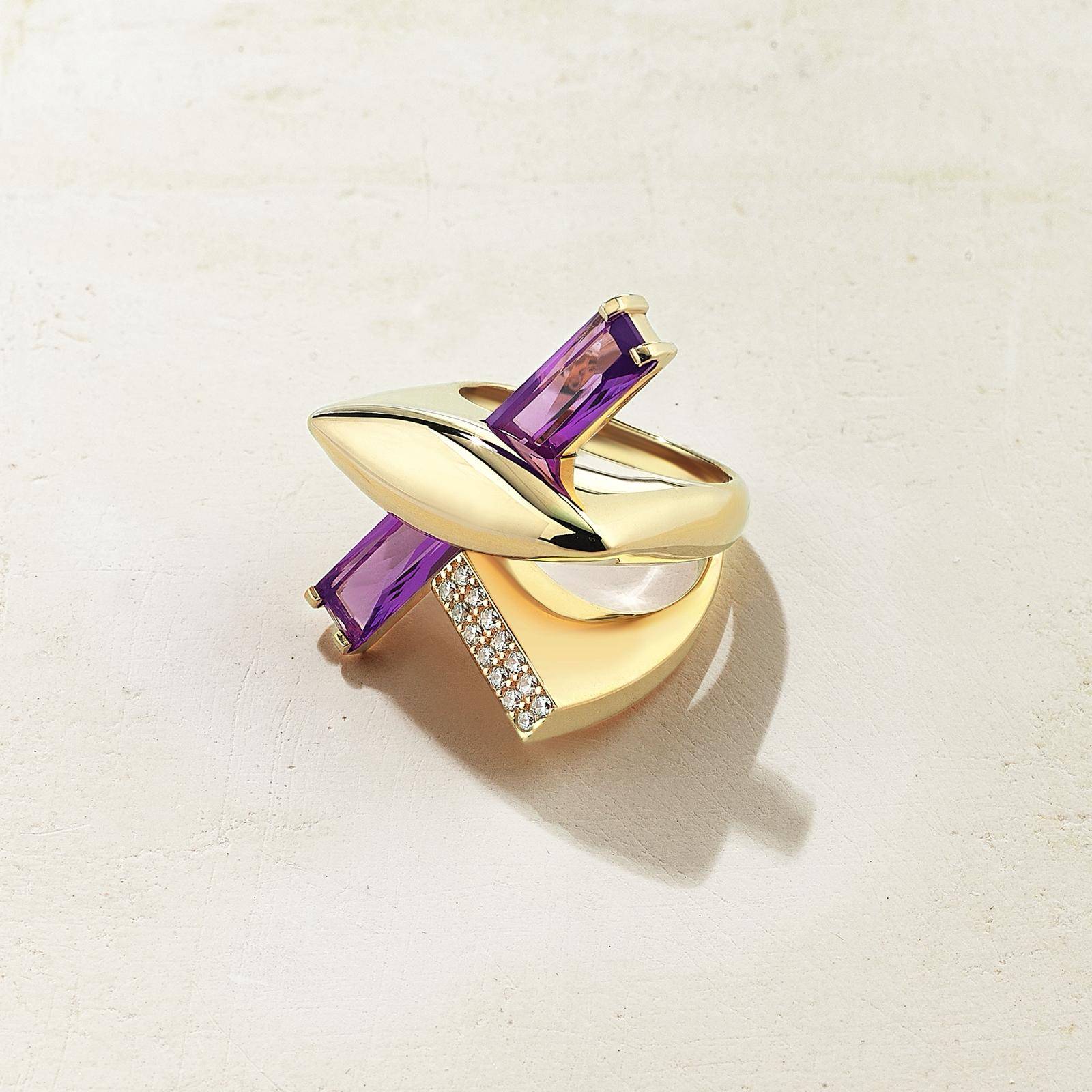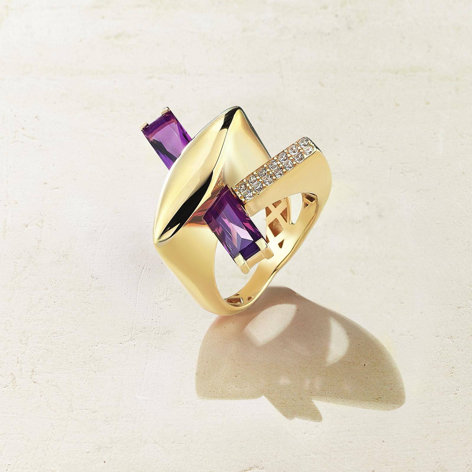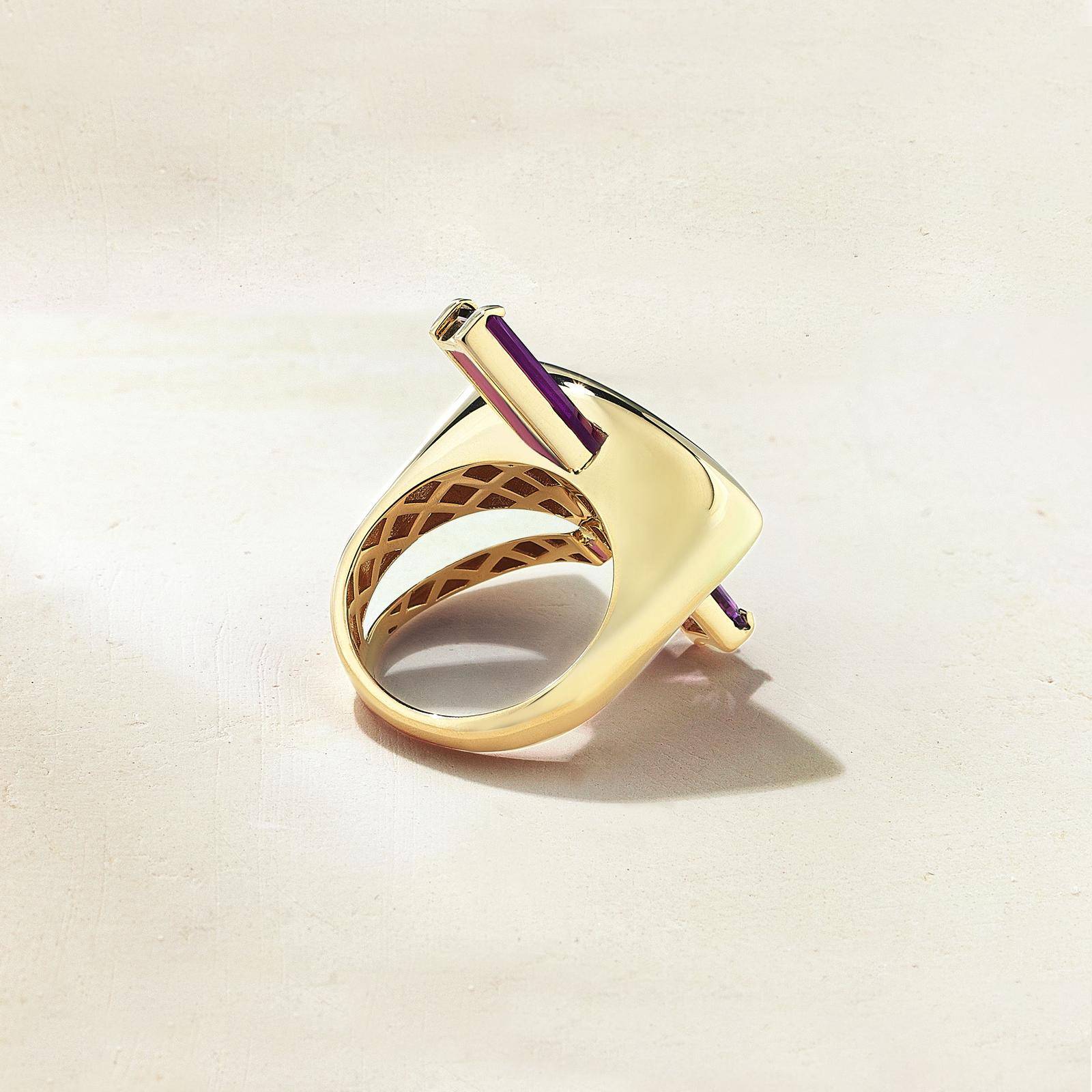 Baget 14 Ayar Altın Mor Taşlı Yüzük