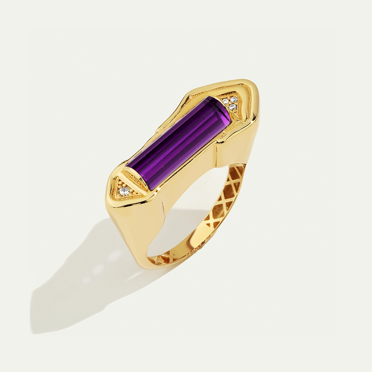 Baget 14 Ayar Altın Mor Taşlı Yüzük