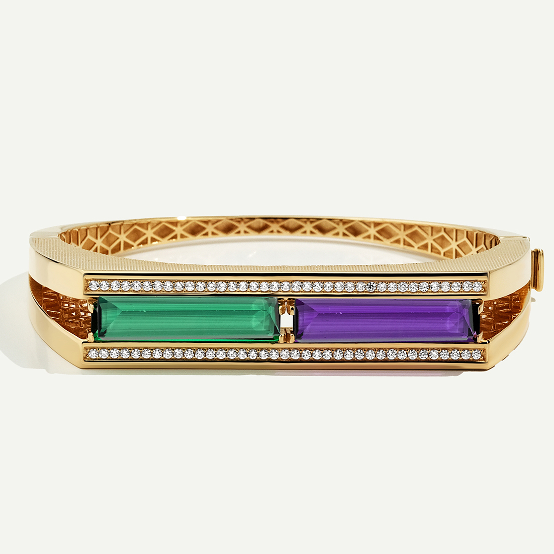 Zarafeti ve modernliği buluşturan 14 Ayar Altın Baget Mor ve Yeşil Taşlı Kelepçe, güçlü tasarımıyla dikkat çeker. Altın gövdesinin merkezinde yer alan yeşil ve mor baget taşlar, kelepçeye sofistike bir karakter kazandırırken, çevresini saran ince taş detayları ışıltıyı artırır. Günlük şıklığınızı tamamlamak veya özel günlerde stilinize modern bir dokunuş katmak için ideal bir seçenektir. Regold logolu özel kutusunda ve garanti belgesiyle birlikte sunulur.