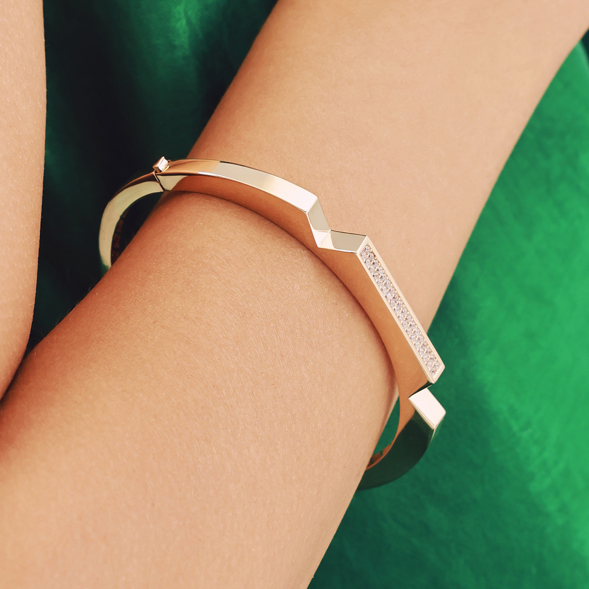 Modern çizgilere sahip bu Baget 14 Ayar Altın Taşlı Kelepçe, geometrik formu ve özenle işlenmiş taş detaylarıyla dikkat çeker. Günlük şıklığa sofistike bir dokunuş katan tasarımıyla stilinizi zarifçe tamamlar. Regold özel kutusunda ve garanti belgesiyle sunulur.