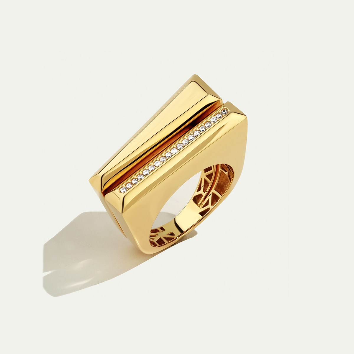 Baget 14 Ayar Altın Taşlı Yüzük, parlak 14 ayar altın zemin üzerine yerleştirilmiş taşlarla lüks bir dokunuş kazanıyor. Taşların yüzey boyunca yayılması yüzüğe ışıltılı bir görünüm katarken altının sıcak tonları bu ışıltıyla dengeleniyor. Modern detayı, taşları ön plana çıkaran yapısıyla hem sade hem dikkat çekici bir şıklık sunuyor. Regold logolu özel kutusunda ve garanti belgesi ile sunulmaktadır.