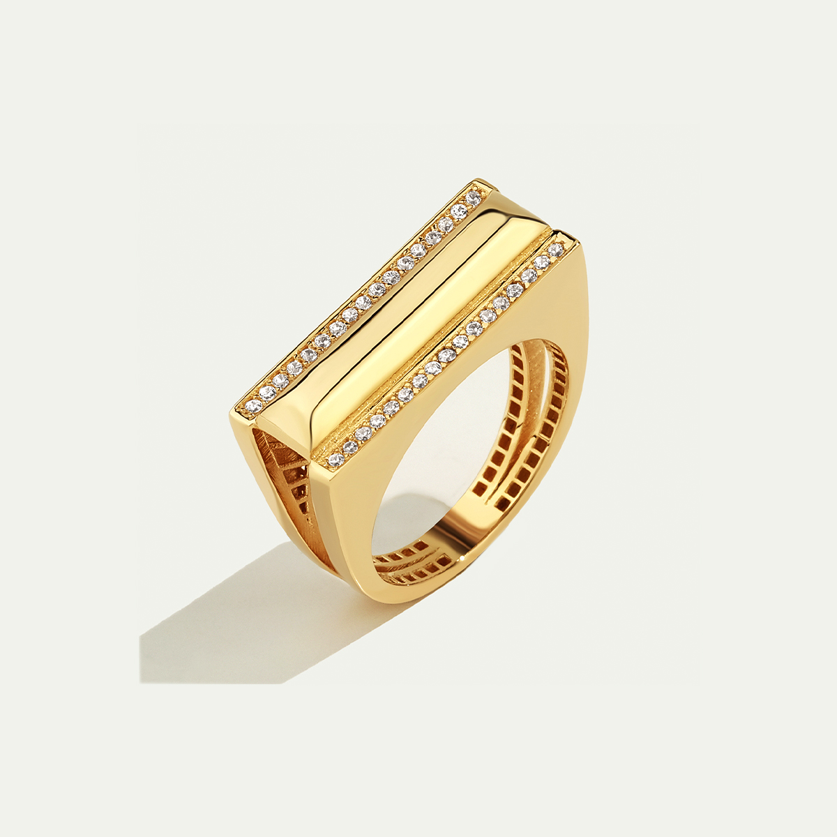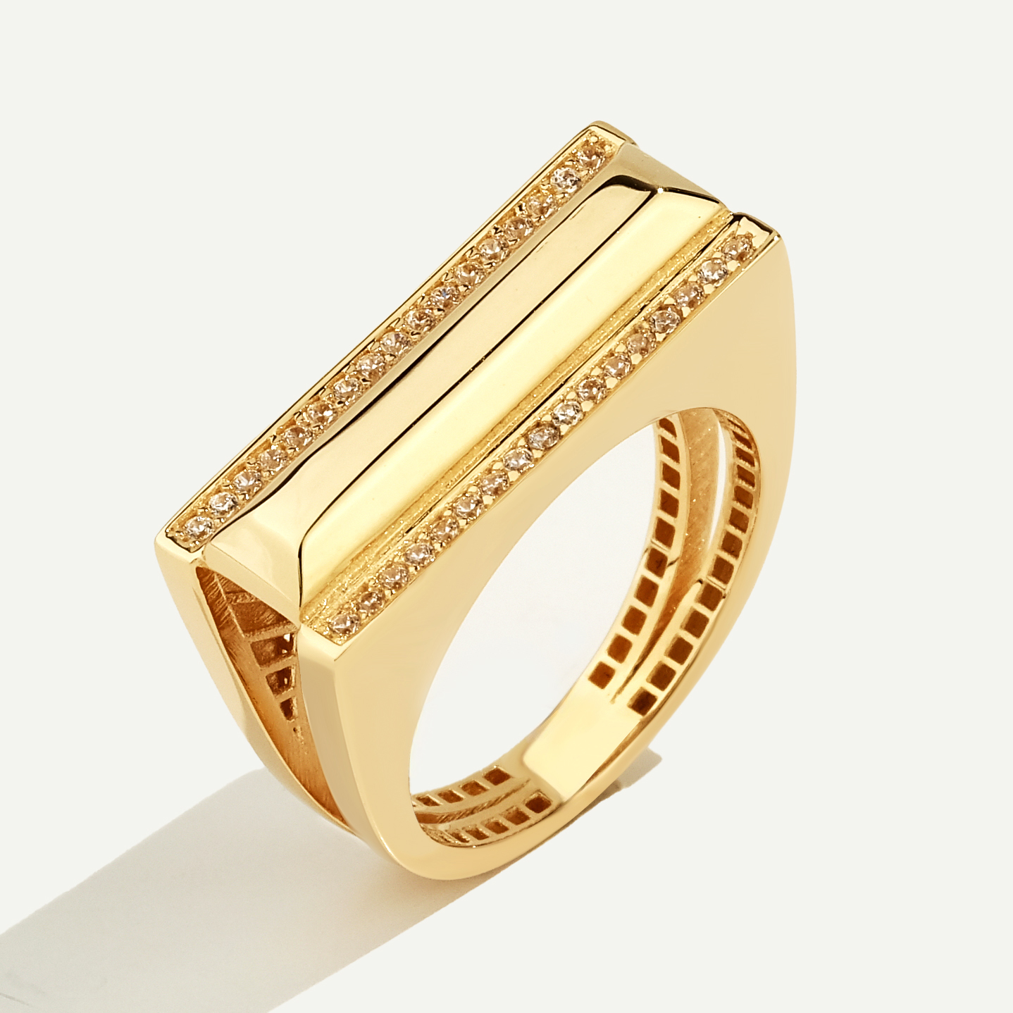 Modern tasarım anlayışıyla tasarlanmış Baget 14 Ayar Altın Yanları Taşlı Yüzük, zarafeti ön plana çıkaran bir modeldir. Yüzüğün baget şeklindeki altın detayı, üzerinde ve altında yer alan ince taşlarla birleşerek hem gündelik kullanım hem de özel davetler için şık bir tercih sunuyor. Altının parlaklığı ve taşların inceliği, tasarıma ışıkla oynayan zarif bir dokunuş katıyor. Regold logolu özel kutusunda ve garanti belgesi ile sunulmaktadır.
