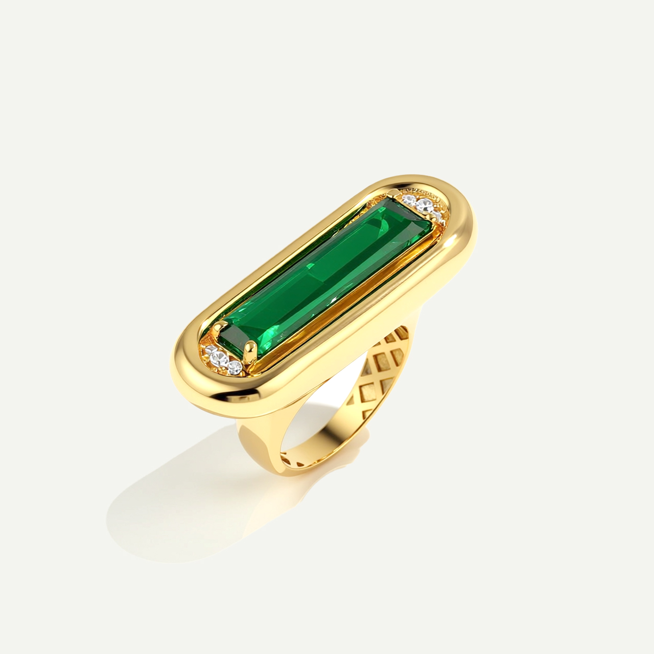 Baget 14 Ayar Altın Yeşil Taşlı Yüzük