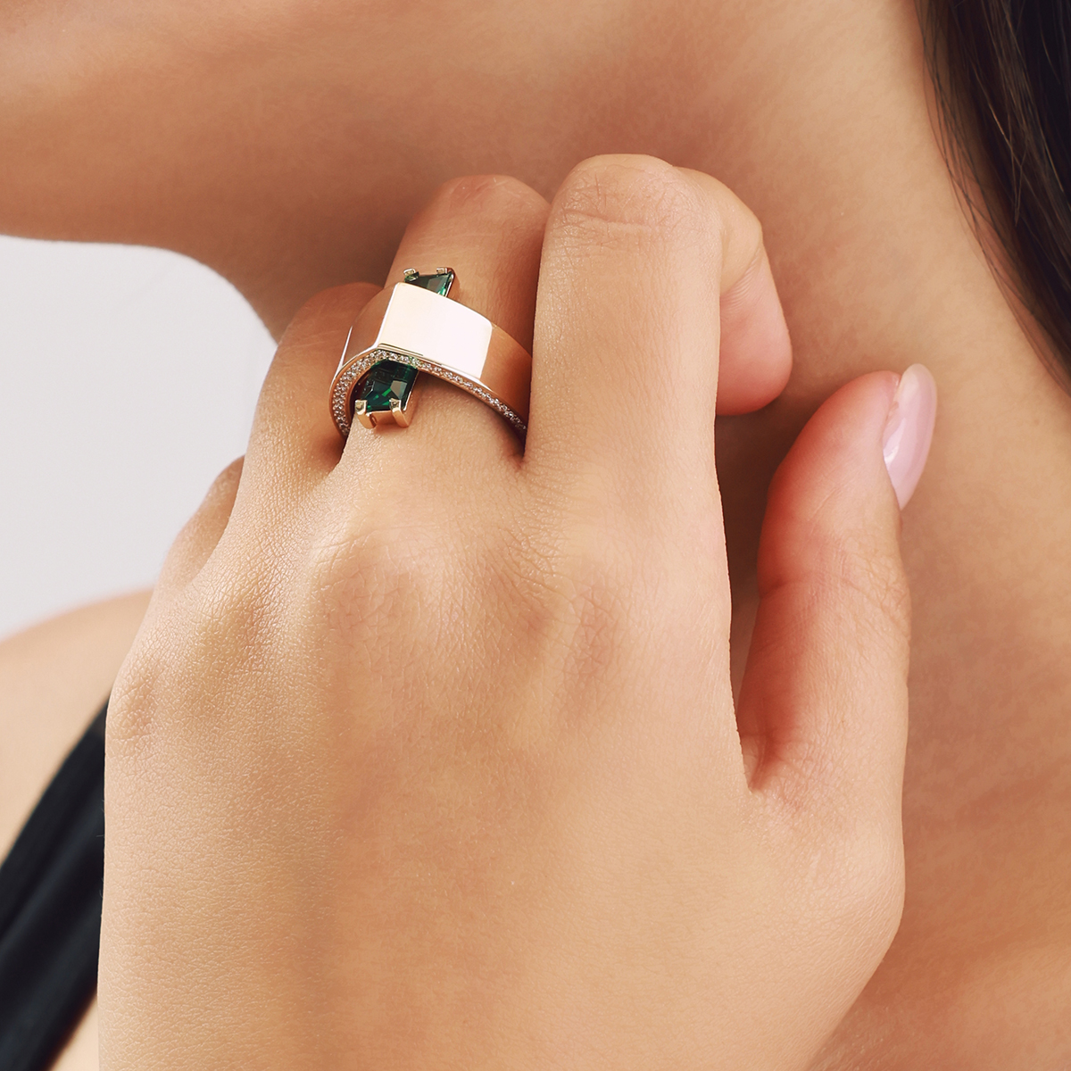Baget 14 Ayar Altın Yeşil Taşlı Yüzük