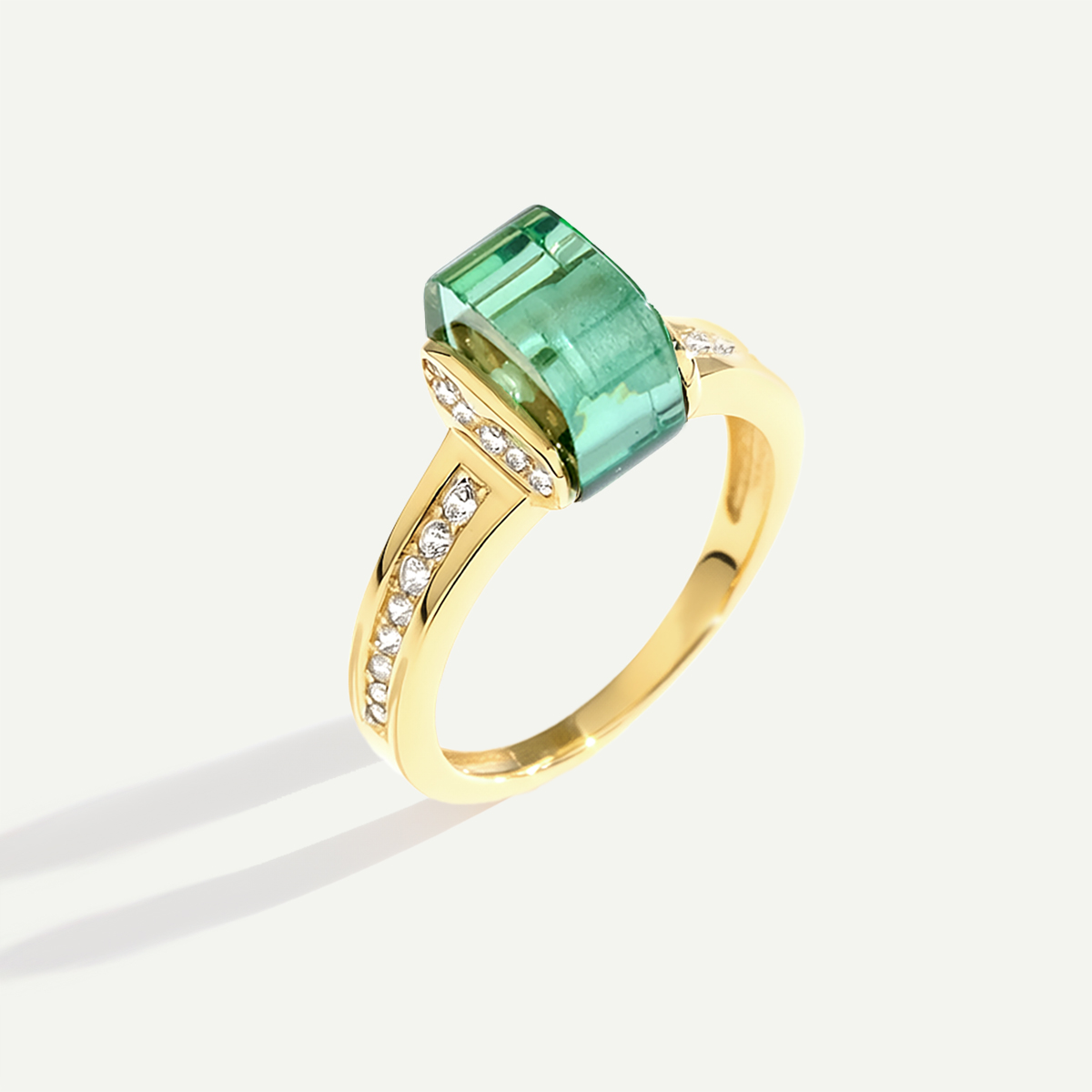 Bonbon 14 Ayar Altın Açık Yeşil Taşlı Yüzük
