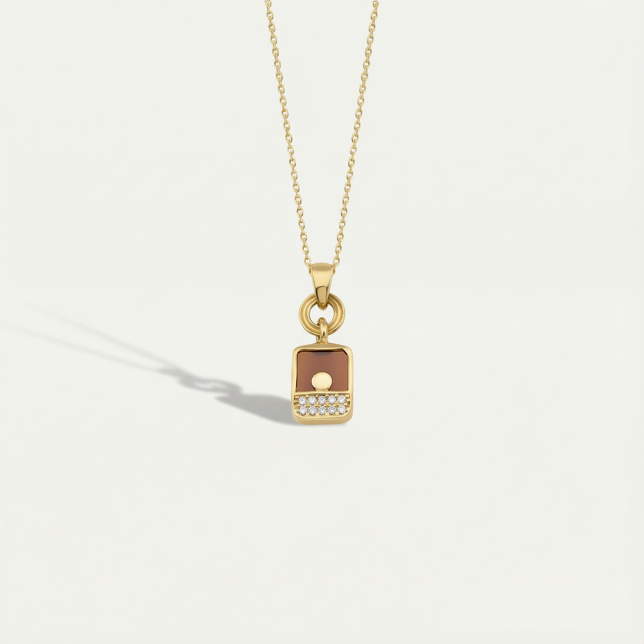 Bonbon 14 Ayar Altın Kahverengi Taşlı Kolye, sıcak tonlu kahverengi taşın altının zarif parlaklığıyla birleştiği sofistike bir tasarım sunuyor. Taşın konumu kolyenin odak noktası olurken çerçeve detayı taşın görünürlüğünü artırıyor. Zincir bağlantısı kolye ucuna dengeli bir geçiş sağlıyor ve tüm tasarım boyuna zarif bir ışıltı katıyor. Günlük kombinlerde sade bir vurgu, özel günlerde zarif bir tamamlayıcı olarak öne çıkar. Regold logolu özel kutusunda ve garanti belgesiyle sunulmaktadır.