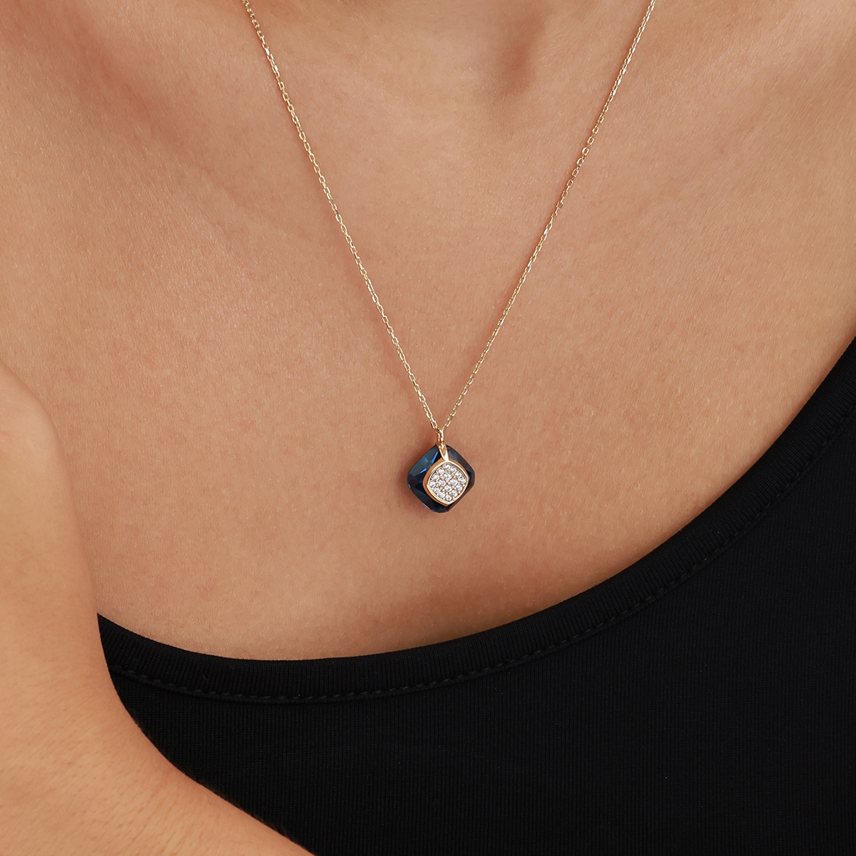 Derin lacivert rengin cazibesi ile parıltılı taşların ışıltısını buluşturan Bonbon 14 Ayar Altın Lacivert Taşlı Kolye, modern ve sofistike bir görünüm sunar. Ortasında yer alan parlak taş detayı, tasarıma zarif bir odak noktası katarken lacivert taş ise asaletin ve şıklığın simgesi olarak öne çıkar. Günlük kullanımda zarif bir dokunuş ya da özel davetlerde göz alıcı bir tamamlayıcı olarak tercih edebilirsiniz. Regold logolu özel kutusunda ve garanti belgesiyle sunulmaktadır.
