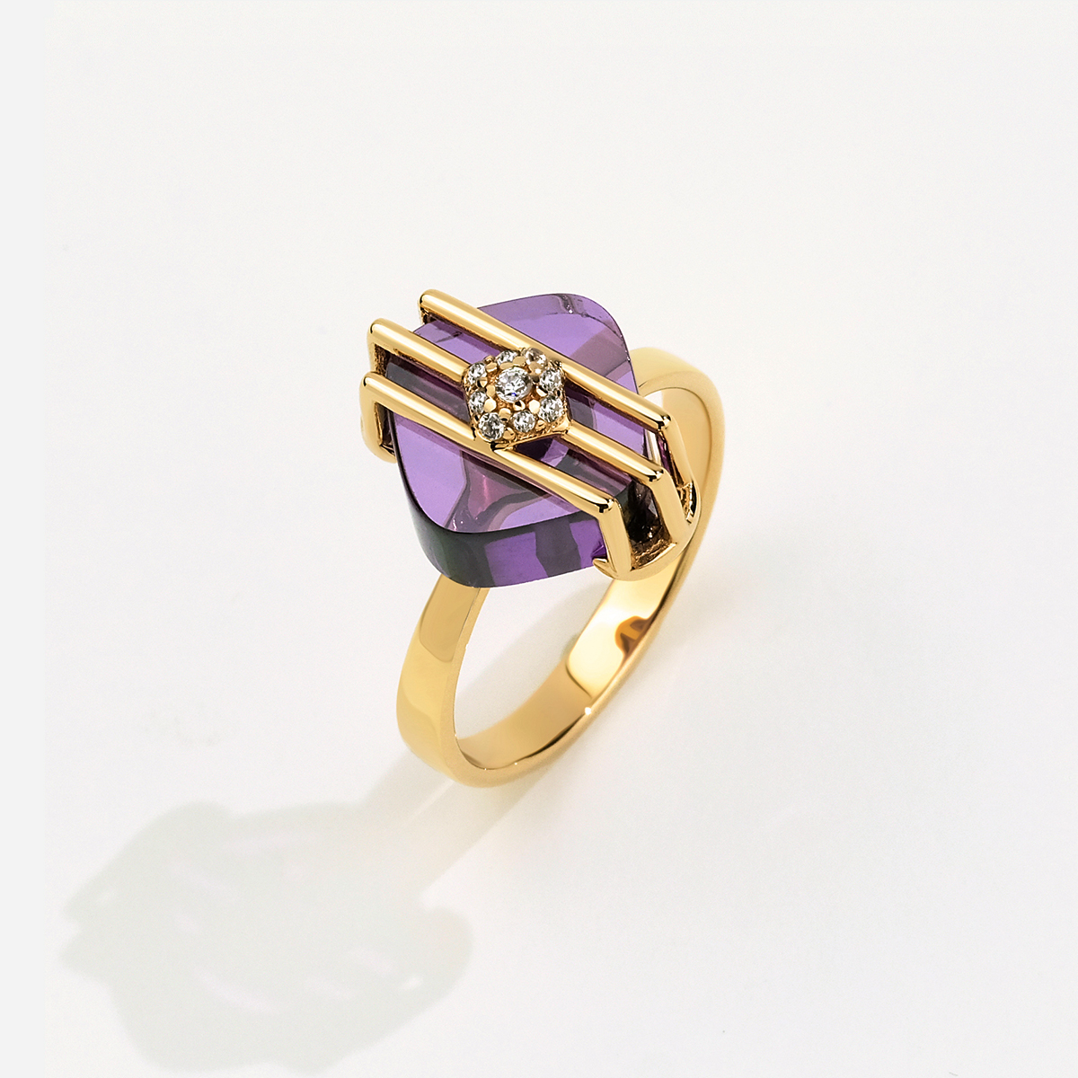 14 Ayar Altın Açık Formlu Mor Taşlı Yüzük