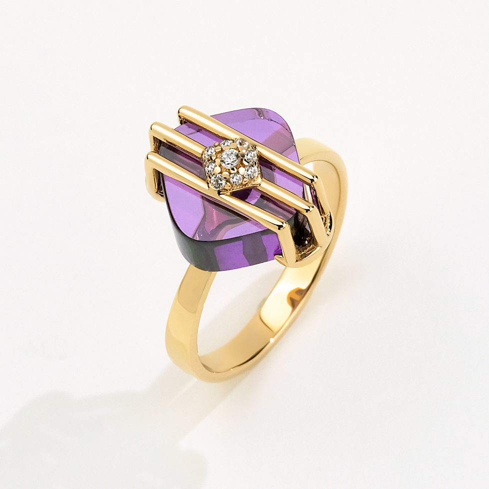 Bonbon 14 Ayar Altın Mor Taşlı Yüzük