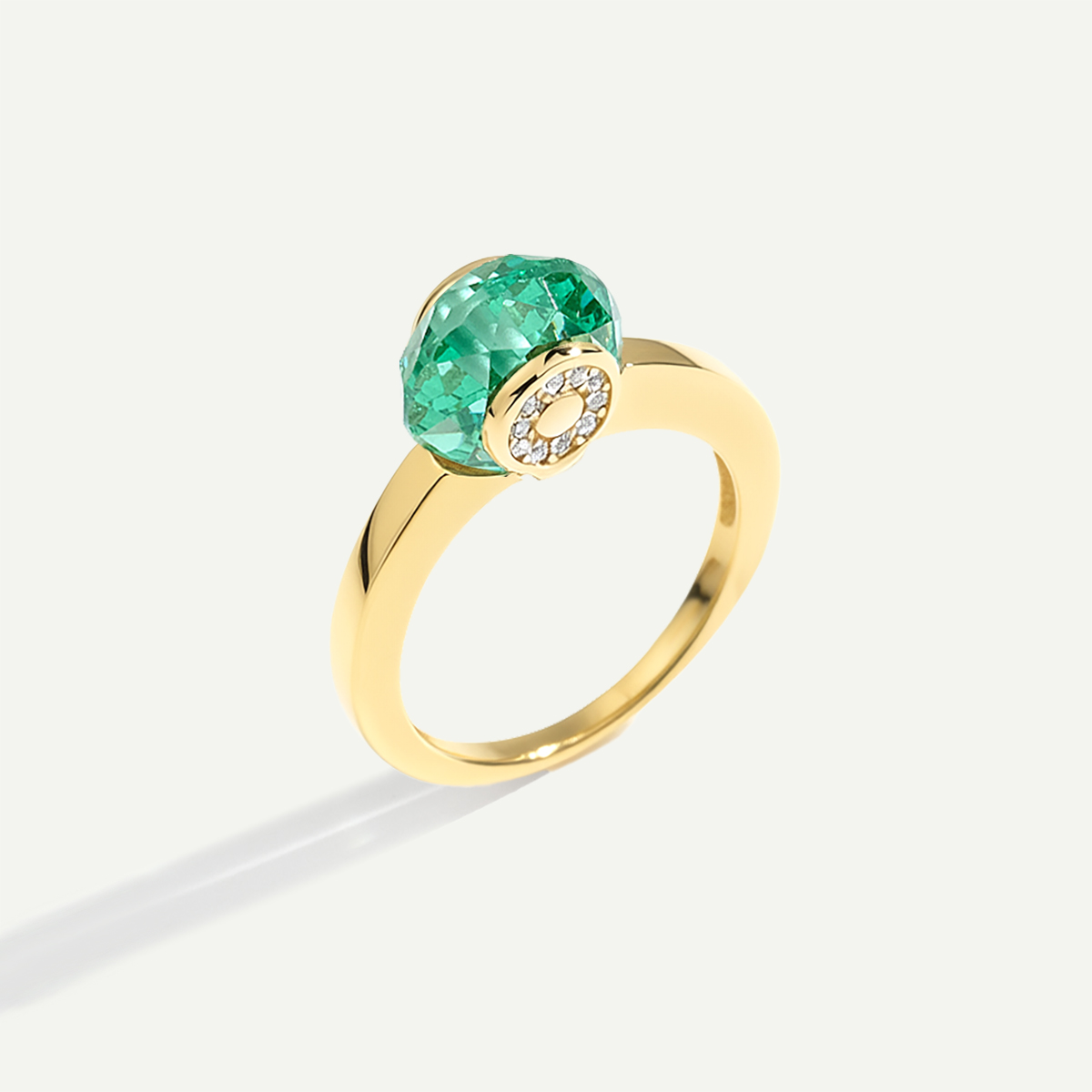 Bonbon 14 Ayar Altın Turkuaz Taşlı Yüzük modern bir formda tasarlanmış yeşil tonundaki büyük taş detayıyla dikkat çekerken taşın altındaki altın yuva üzerine yerleştirilen ince taş sıraları tasarıma zarif bir ışıltı katıyor. Parlak altın bantla birleşen bu gösterişli yüzüğe hem heykelsi bir duruş hem de güçlü bir renk vurgusu kazandırıyor ve parça sade ama çarpıcı bir stil arayanlar için ideal bir seçenek haline geliyor. Regold logolu özel kutusunda ve garanti belgesiyle sunulmaktadır.