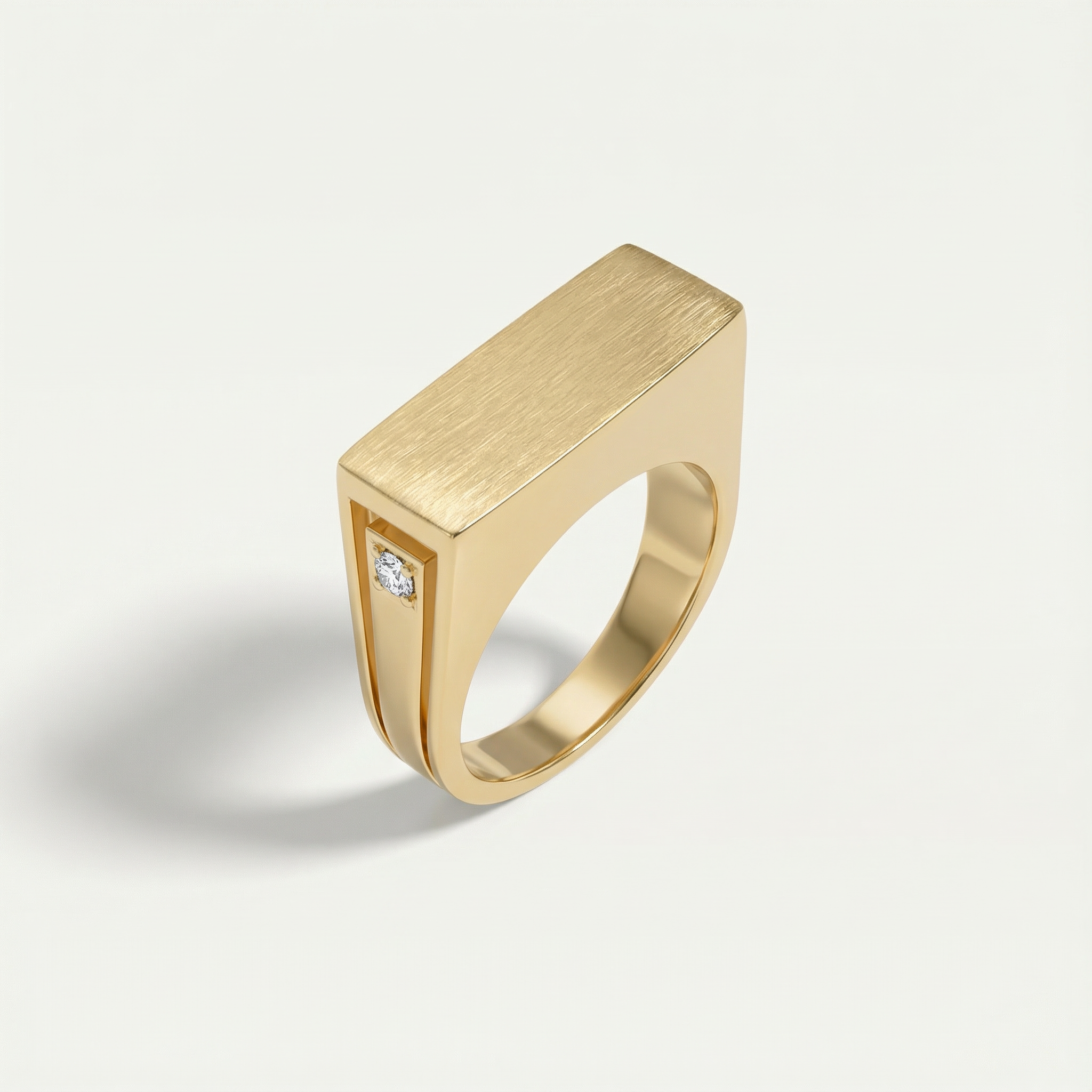 Bu Electra 14 Ayar Altın Yüzük, fırçalanmış mat yüzeyiyle dikkat çeken estetik bir tasarım sunuyor. Mat dokunun pürüzü, yüzüğü sade parıltıya boğmadan sofistike bir ifade katıyor. Köşeli mimari formuyla modern çizgiler taşıyan model, küçük taş detaylarıyla narin bir ışıltı eklerken altının sıcak tonu ile dengeli bir görünüm sağlıyor. Regold logolu özel kutusunda ve garanti belgesi ile sunulmaktadır.