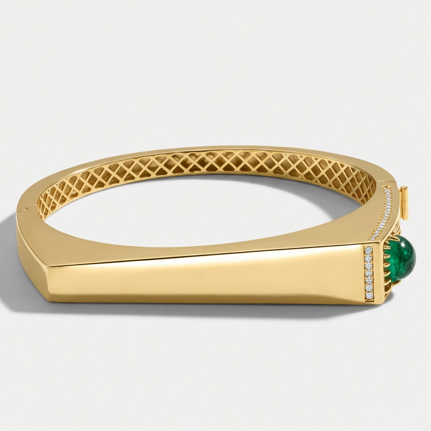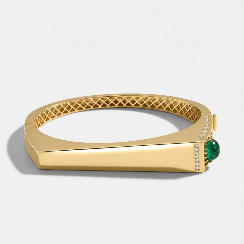 Zarif çizgileriyle modern bir duruşa sahip olan Electra 14 Ayar Altın Yeşil Taşlı Kelepçe, geniş ve düz yüzeyli kesimiyle sade bir görünüm sunarken yan kısımlarındaki ajurların içinde gizlenen üçgen formdaki yeşil taşla tasarıma beklenmedik bir zarafet katıyor. Parlak altın yüzey, taşın canlı tonunu öne çıkararak sofistike bir denge oluşturur ve aynı koleksiyondaki diğer parçalarla birlikte kullanıldığında kusursuz bir uyum yakalanır. Regold logolu özel kutusunda ve garanti belgesi ile sunulmaktadır.