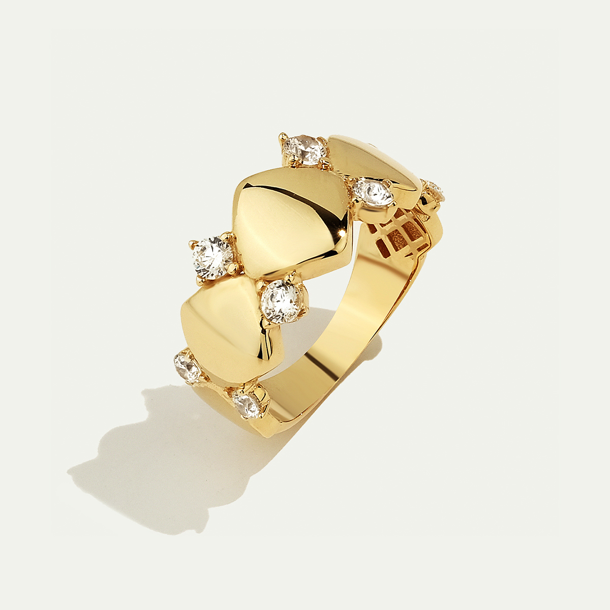 Eta 14 Ayar Altın Geometrik Formlu Taşlı Yüzük