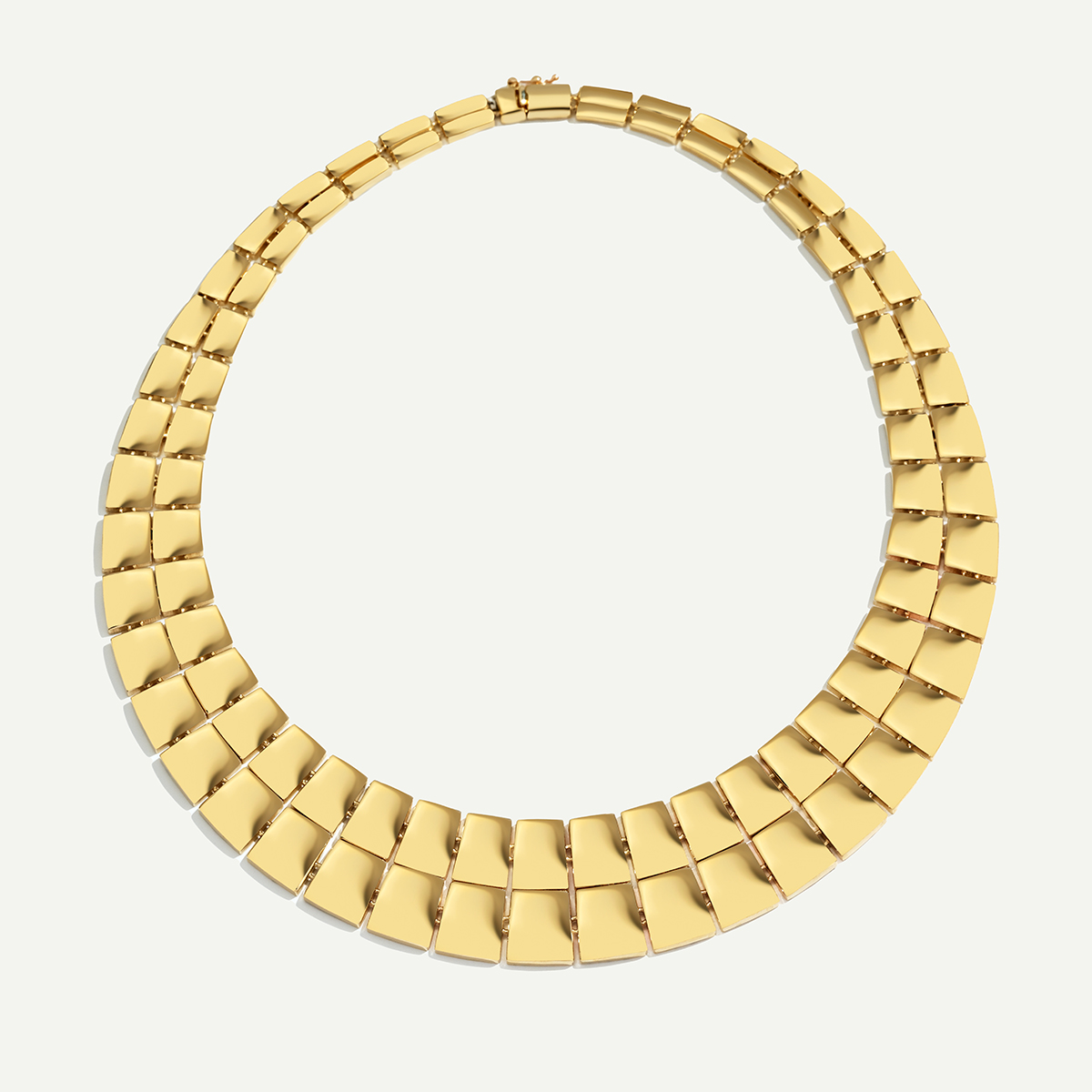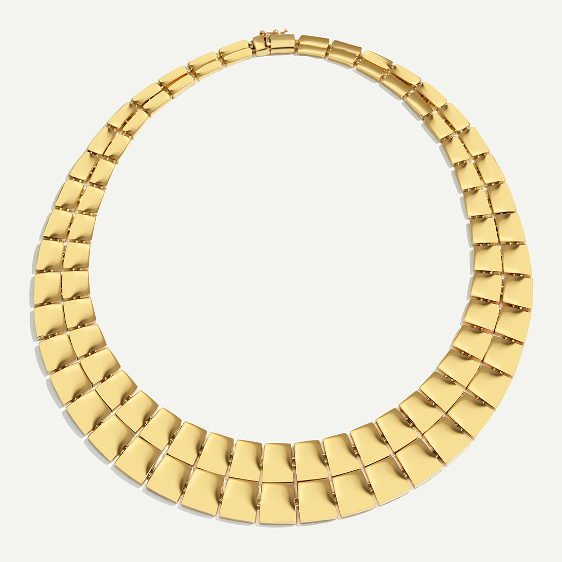 Eta koleksiyonunun mimari ve güçlü çizgisini yansıtan bu set, Eta 14 Ayar Altın Set adıyla modern bir zarafet sunar. Kolye, yüzük ve bileklikten oluşur ve her bir parça, parlak altının gücünü yansıtan, birbirine kenetlenmiş geniş, geometrik segmentlerle tasarlanmıştır. Taşsız yapısı, tasarımdaki dikkat çekici ve heykelsi formun bütünüyle öne çıkmasını sağlar. Kolye, bileği saran bileklik ve parmakta güçlü bir duruş sergileyen yüzükteki bu uyumlu doku, kombininize sofistike ve bütüncül bir hava katar. Bu üçlü set, minimalist olduğu kadar iddialı bir stil arayanlar için zamansız ve lüks bir tercihtir.
