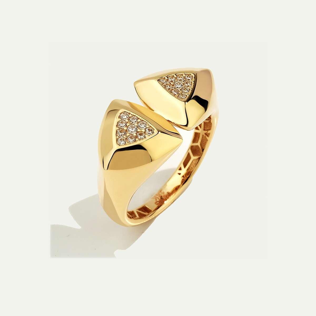 Eta 14 Ayar Altın Üçgen Detaylı Taşlı Yüzük