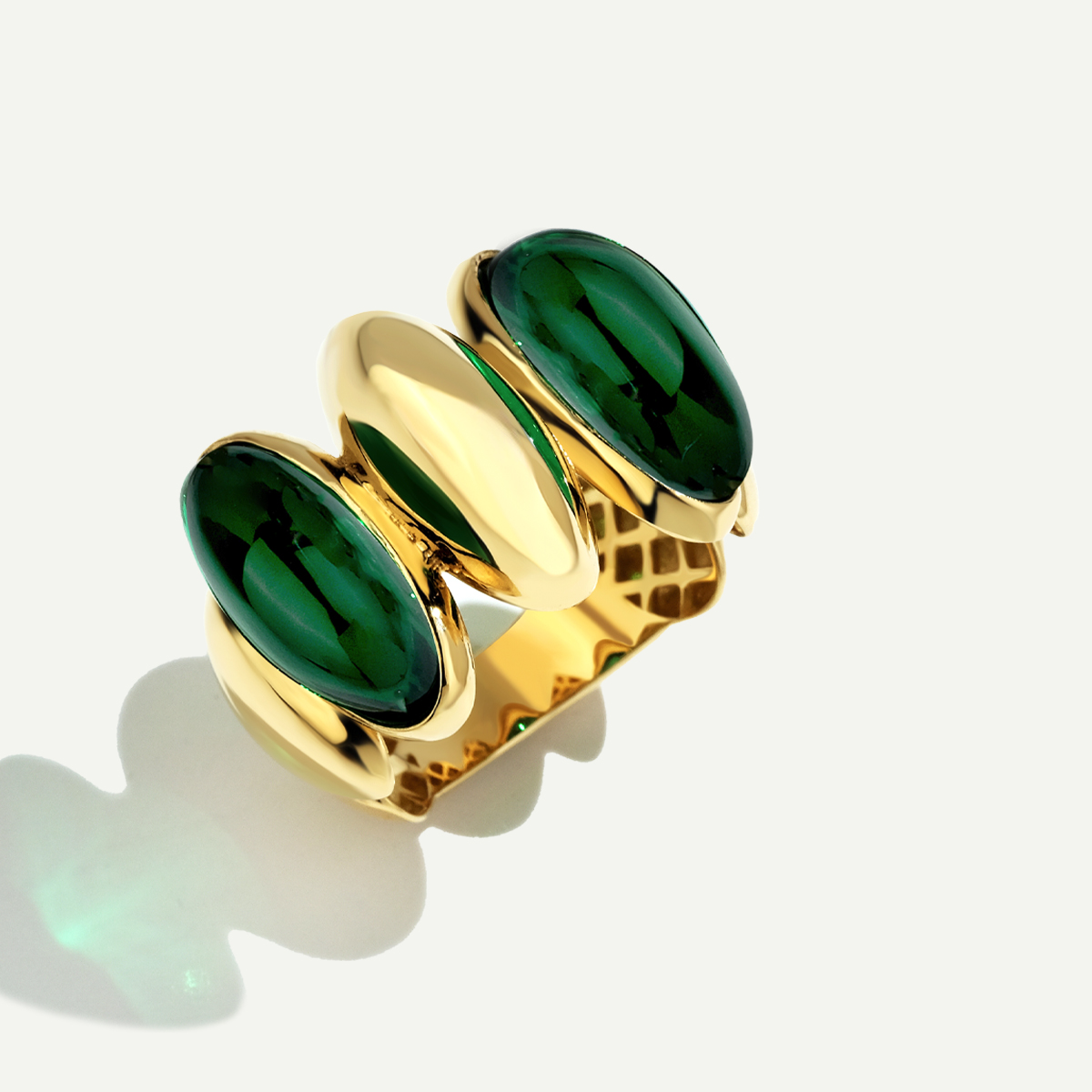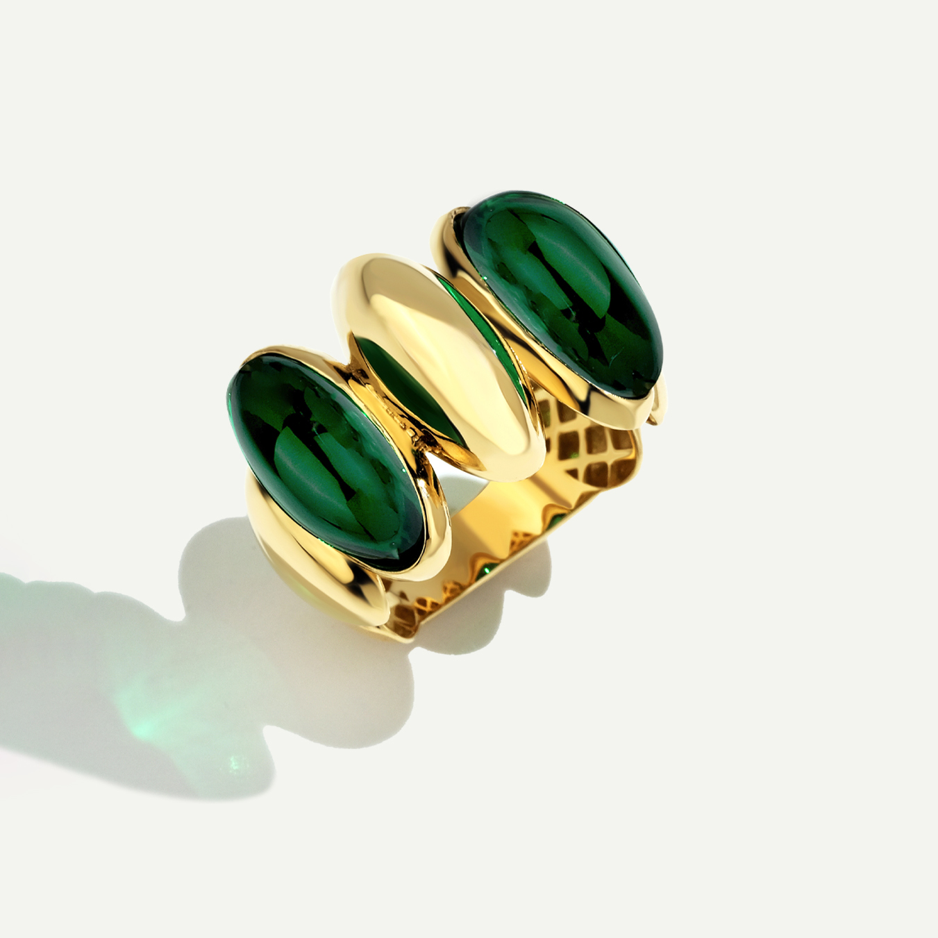 Eta 14 Ayar Altın Yeşil Taşlı Yüzük