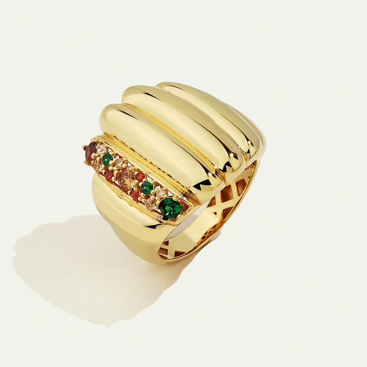 Eta 14 Ayar Altın Yeşil ve Turuncu Taşlı Yüzük