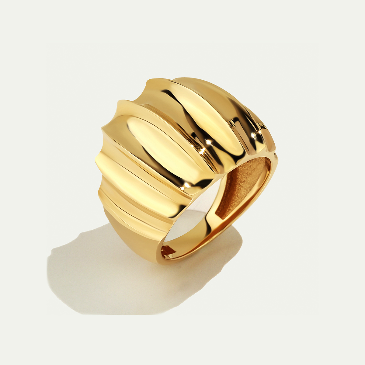 Bombeli yüzeyiyle kavisli formu dikkat çeken Maya 14 Ayar Altın Bombeli Yüzük, ışığı yansıtarak zarif ve hacimli bir görünüm sunar. Parlak altın dokusu göz alıcı bir sadelik oluştururken bombeli tasarım yüzüğe modern ve sofistike bir karakter kazandırır. Günlük kombinlerde zarif bir tamamlayıcı olan bu model özel günlerde de stilinizi ön plana çıkarır. Regold logolu özel kutusunda ve garanti belgesi ile sunulmaktadır.